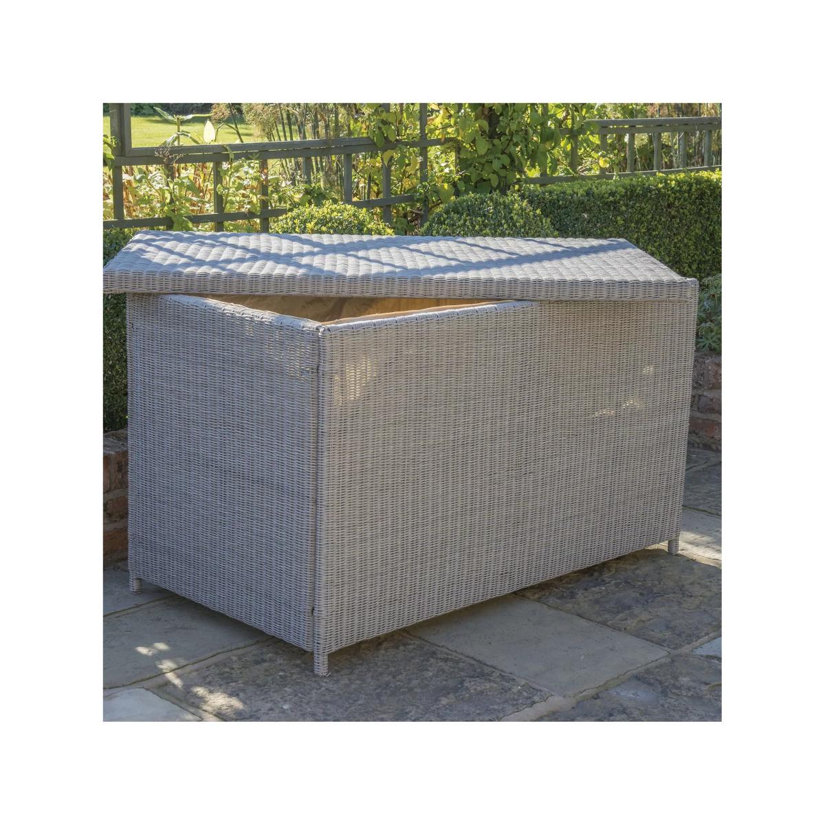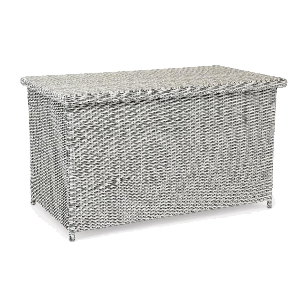 The KETTLER Palma storage box is a great addition to a lounge or dining set to store cushions or similar. Made with an aluminium frame and handwoven 6mm half-round UV-resistant wicker. Includes a zipped liner that's showerproof. A tailored protective cover is also available. The box fits the following KETTLER sets in: Palma Mini, Palma Corner, Palma lounger x4, Palma Grande Corner, Palma Grande Corner with armchair and bench (although a very tight fit), Harlow Carr 2 Seat Sofa Set. The box does not fit: Palma Low Lounge set, Fiji Lounge Set, Beach set or Harlow Carr 3 Seat Sofa. The large KETTLER aluminium storage box should be recommended for these, excluding Beach.