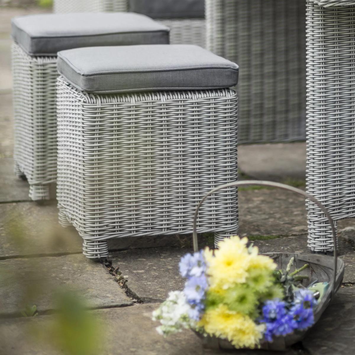The Palma stool has multiple uses. From providing additional seats around the dining table to putting your feet up when relaxing, it makes a great addition to your garden furniture. Made from a high quality hand-woven wicker, strength and sustainability is ensured. This use of material also makes the stool weatherproof and suitable for leaving outdoors all year round. Complete with a tailored cushion and footcaps, it's ready to go outside when you are. The Palma Stool is new to the Kettler range for 2016. It's an ideal option to add extra seating to your Palma Corner, Palma Mini or Sofa Set. Please note: not all our ranges are on display in our shops.