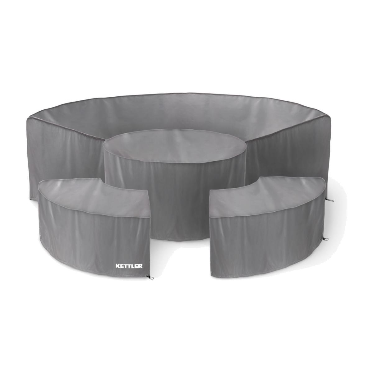 KETTLER casual dining furniture can be left outdoors year-round, but to retain a pristine appearance, use these polyester covers when your Palma round dining set is not in use. There are four covers for the sofa set, table and two benches. A handy pull cord allows you to tighten the cover around the furniture for secure protection. The cover provides UVA protection from the sun and is windproof and waterproof. Position the cover so that no water is allowed to pool on the surface. Want to see it first? You may want to see and get a feel for the product in one of our shops before ordering. We'll be able to tell you where the range you'd like to view is on display.
