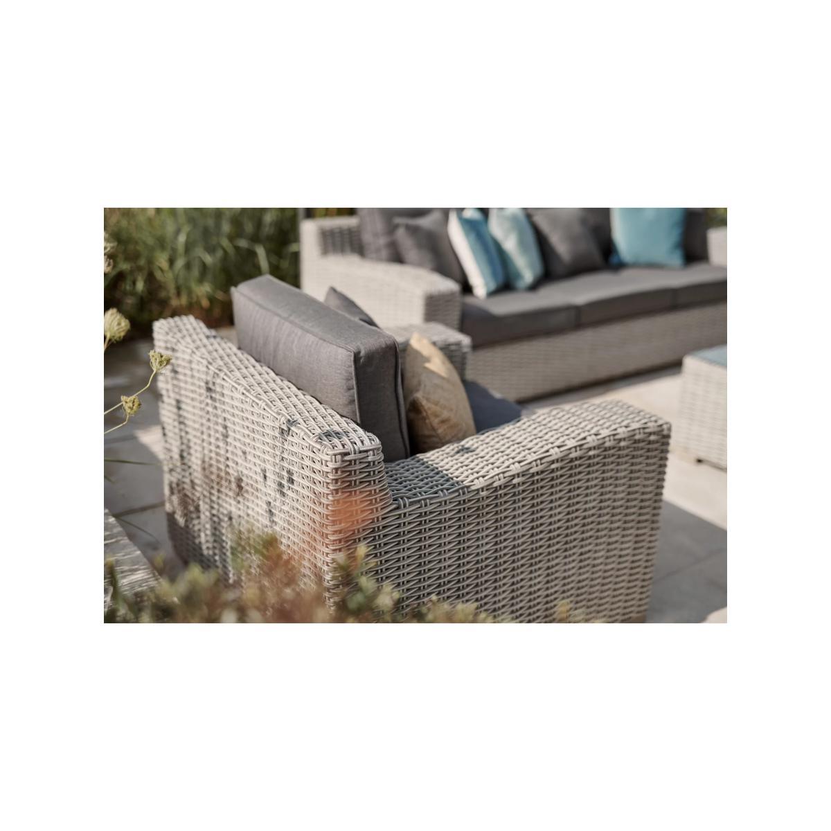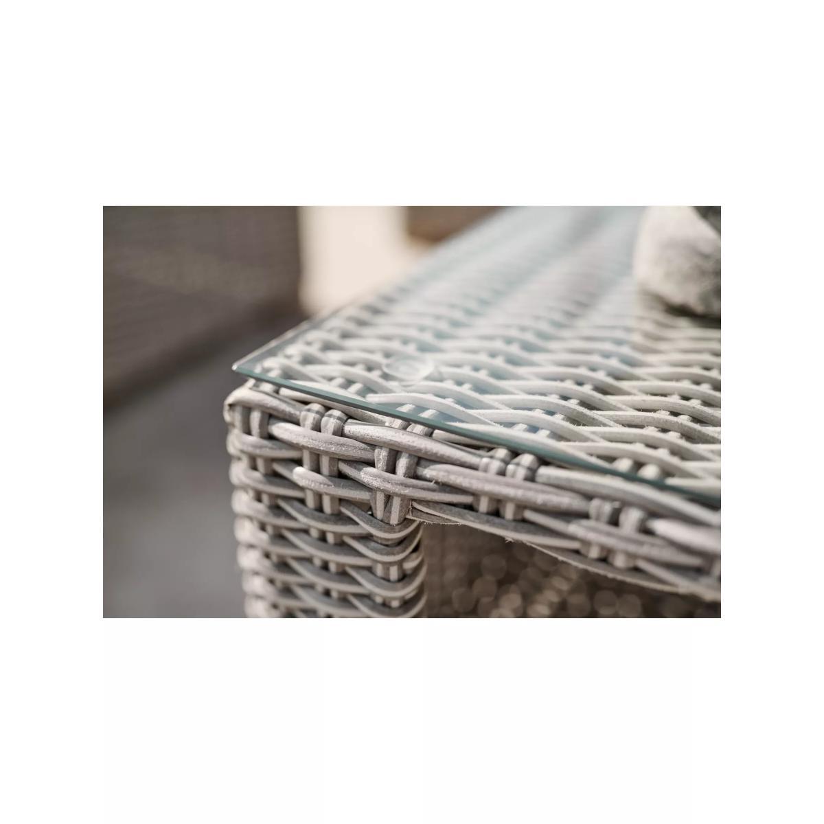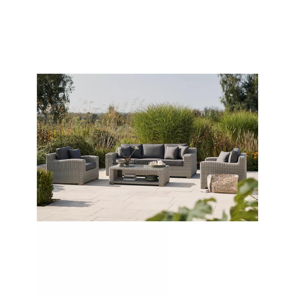 Made with a luxurious 10mm-thick weave, the Palma Luxe garden lounging set seats up to five people. The set includes a three-seater sofa, two armchairs and a rectangular coffee table with a glass top. With style and durability at the heart of the design, KETTLER's Palma outdoor furniture is made of synthetic wicker with a rounded weave and traditional rattan look. Key features: Rectangular garden coffee table with tempered glass top 3-seater garden sofa, 2 garden armchairs Traditional-style handwoven synthetic wicker Weatherproof, rustproof and UV-resistant Lightweight yet robust aluminium frames Comfortable shower-resistant cushions Easy to maintain Match with other furniture in the Palma range Rectangular coffee table The coffee table has a tempered glass top for strength and a handy shelf underneath. Durable and weatherproof Built to last, the set is made with lightweight yet sturdy powder-coated aluminium frames and handwoven synthetic wicker with a luxurious 10mm half-round weave. The set is weatherproof, rustproof and UV-resistant, so it can remain outdoors all year round without it fading or cracking. Low maintenance The set needs just an annual clean with mild soapy water (without abrasive solvents). The cushions are sponge clean only. If you wish to cover your furniture, a breathable cover can be used but make sure the furniture is dry before pulling it over the top. Soft and comfortable cushions The seating comes with soft, comfortable seat cushions and backrest cushions that keep their shape, as well as scatter cushions. The double-piped cushions are shower-resistant and easy to remove. Bring them inside when not in use. Want to see it first? You may want to see and get a feel for the product in one of our shops before ordering. We'll be able to tell you where the range you'd like to view is on display.
