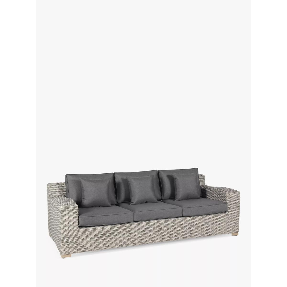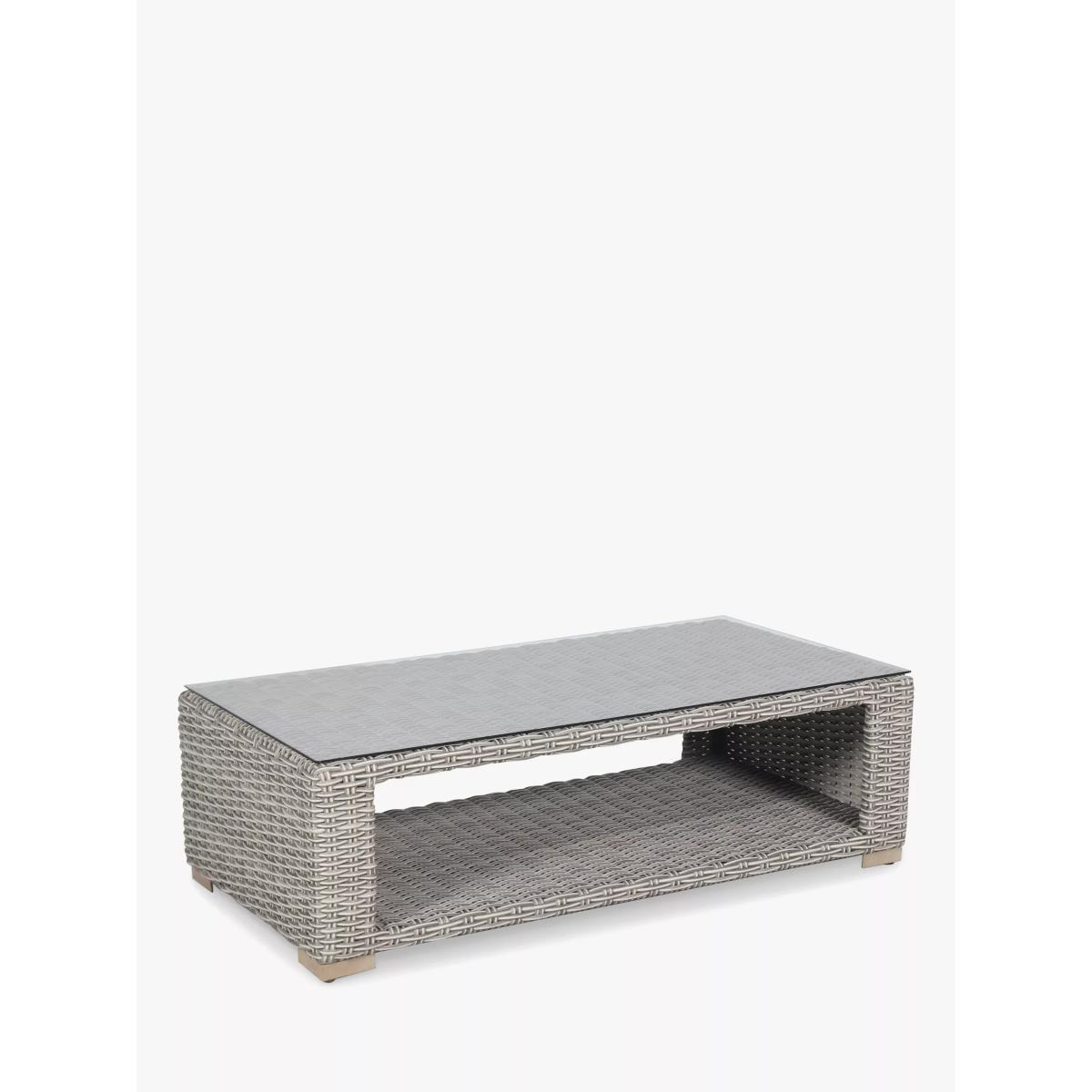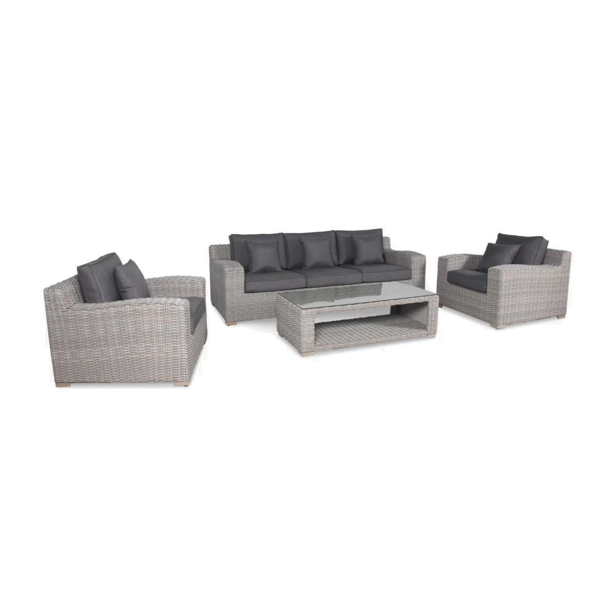 Made with a luxurious 10mm-thick weave, the Palma Luxe garden lounging set seats up to five people. The set includes a three-seater sofa, two armchairs and a rectangular coffee table with a glass top. With style and durability at the heart of the design, KETTLER's Palma outdoor furniture is made of synthetic wicker with a rounded weave and traditional rattan look. Key features: Rectangular garden coffee table with tempered glass top 3-seater garden sofa, 2 garden armchairs Traditional-style handwoven synthetic wicker Weatherproof, rustproof and UV-resistant Lightweight yet robust aluminium frames Comfortable shower-resistant cushions Easy to maintain Match with other furniture in the Palma range Rectangular coffee table The coffee table has a tempered glass top for strength and a handy shelf underneath. Durable and weatherproof Built to last, the set is made with lightweight yet sturdy powder-coated aluminium frames and handwoven synthetic wicker with a luxurious 10mm half-round weave. The set is weatherproof, rustproof and UV-resistant, so it can remain outdoors all year round without it fading or cracking. Low maintenance The set needs just an annual clean with mild soapy water (without abrasive solvents). The cushions are sponge clean only. If you wish to cover your furniture, a breathable cover can be used but make sure the furniture is dry before pulling it over the top. Soft and comfortable cushions The seating comes with soft, comfortable seat cushions and backrest cushions that keep their shape, as well as scatter cushions. The double-piped cushions are shower-resistant and easy to remove. Bring them inside when not in use. Want to see it first? You may want to see and get a feel for the product in one of our shops before ordering. We'll be able to tell you where the range you'd like to view is on display.