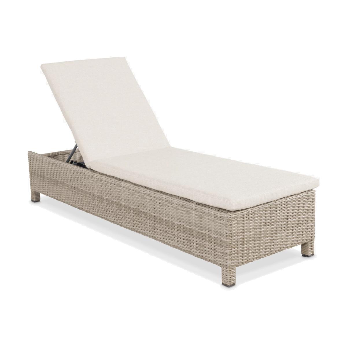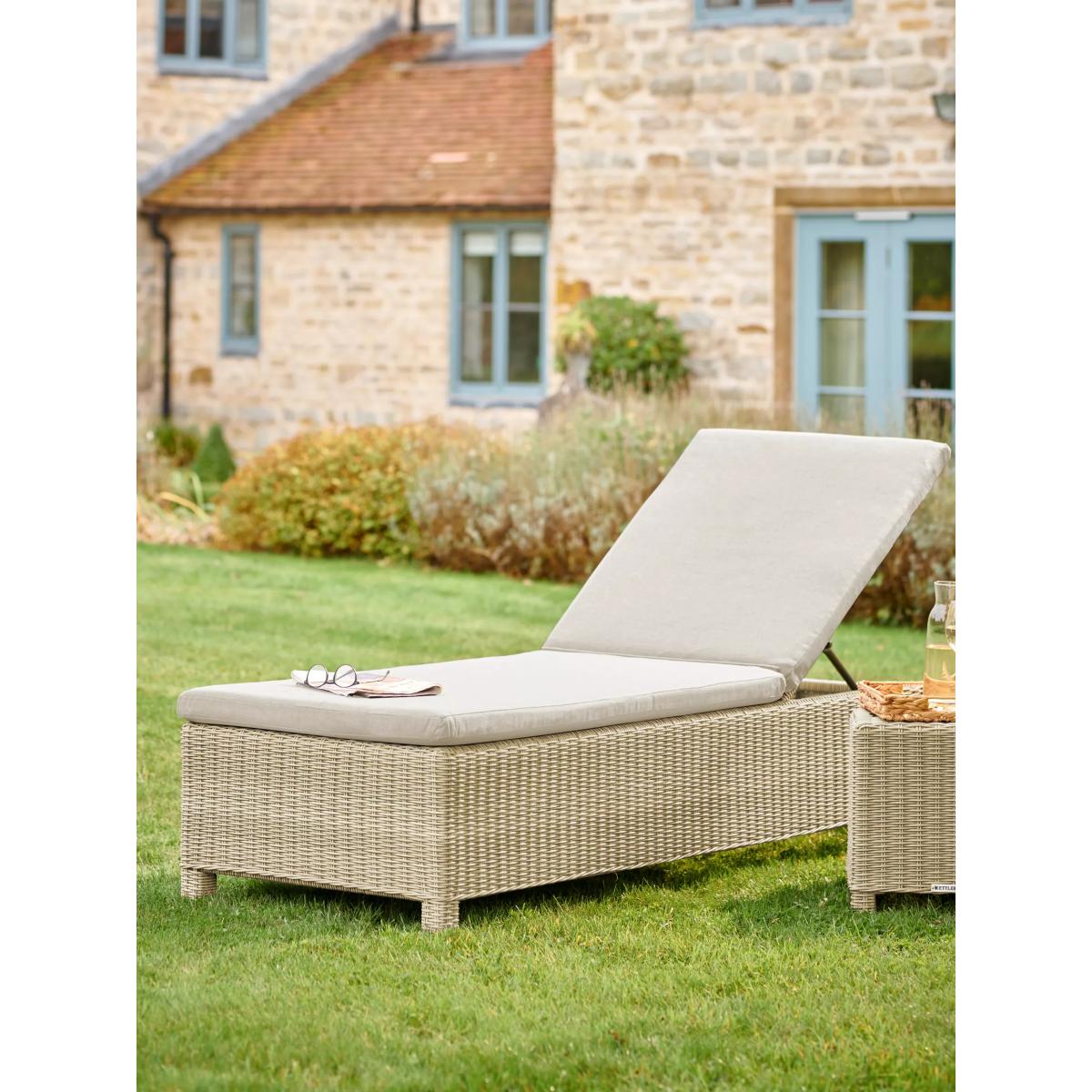 While away the hours in sunny weather and enjoy just the right reclining angle with this height-adjustable Palma sunlounger from KETTLER. The backrest can easily be adjusted to one of five positions, from upright to lie completely flat. It can even be pushed together with another lounger to create a double lounger bed. This sunlounger features thick cushioning for luxurious comfort. The lounger is made from synthetic wicker with a round weave on a durable powder-coated aluminium frame, giving it a sleek, light design and plenty of strength. Key features: Adjustable height sunlounger Traditional-style handwoven synthetic wicker Weatherproof, rustproof and UV-resistant Lightweight yet robust aluminium frame Adjustable feet Soft, shower-resistant cushion Easy to maintain Match with other furniture in the Palma range Durable and weatherproof Built to last, the sunlounger is made with lightweight yet sturdy powder-coated aluminium frames and handwoven synthetic wicker with a 6mm weave. It's weatherproof, rustproof and UV-resistant, so it can remain outdoors all year round without it fading or cracking. Low maintenance The sunlounger arrives fully assembled and needs just an annual clean with mild soapy water (without abrasive solvents). The cushion is sponge clean only. If you wish to cover your furniture, a breathable cover can be used but make sure the furniture is dry before pulling it over the top. Soft and comfortable cushion The sunlounger comes with a soft, comfortable seat cushion. The taupe cushion is shower-resistant and easy to remove. Bring it inside when not in use. Adjustable feet KETTLER has added adjustable feet to handle uneven surfaces. Want to see it first? You may want to see and get a feel for the product in one of our shops before ordering. We'll be able to tell you where the range you'd like to view is on display.