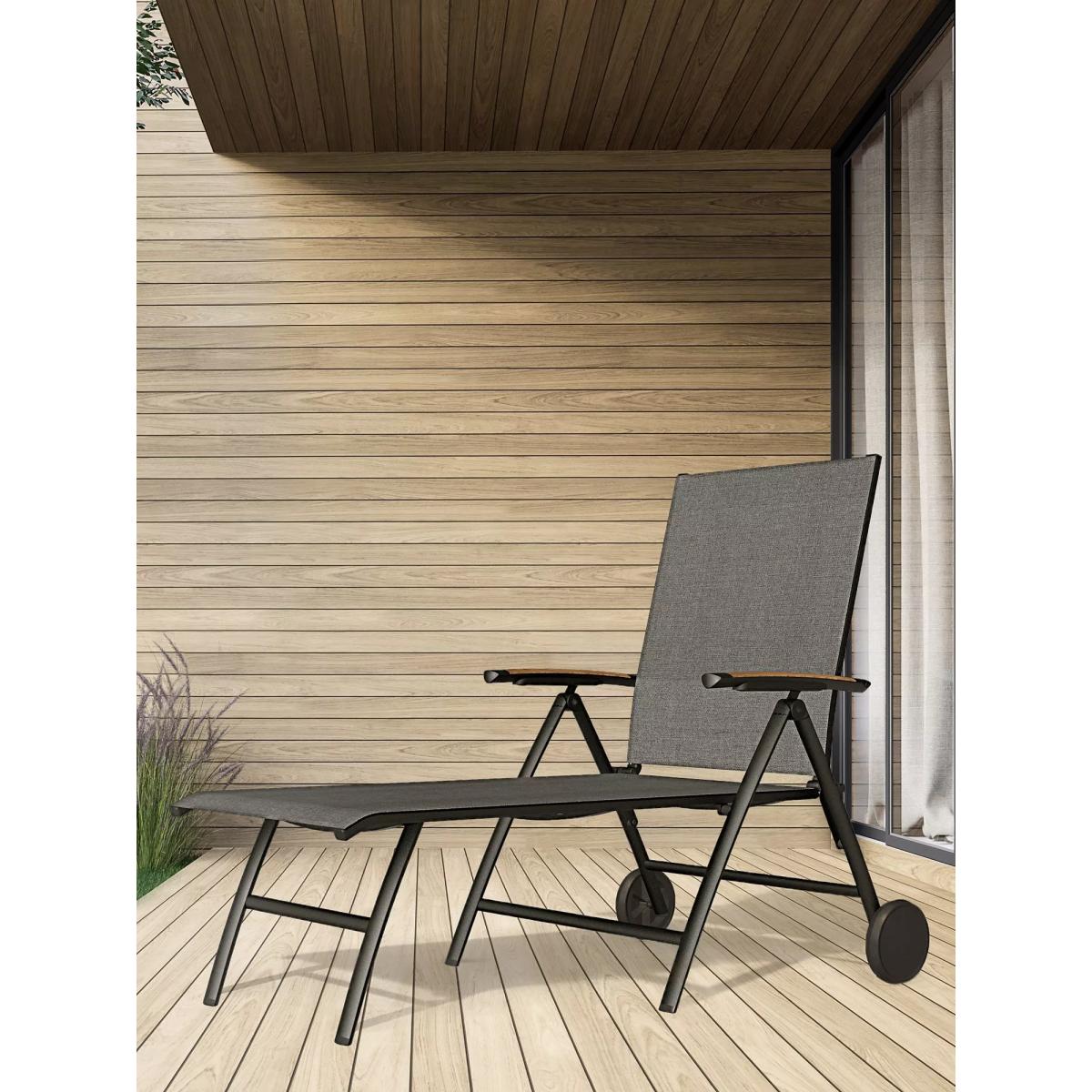 Recline and relax with the Surf Active sunlounger from KETTLER featuring four adjustable positions for customised comfort. The sunlounger can be left outdoors all year round and is virtually maintenance-free. Made of a lightweight aluminium frame with protective footcaps, it comes with transporter wheels for easy moving and it folds up for storage. It's made with a strong, all-weather fabric ensuring comfort without the need for extra cushions. It's adjustable in height using the armrests to choose the perfect position and the armrests are made of FSC-certified teak wood.