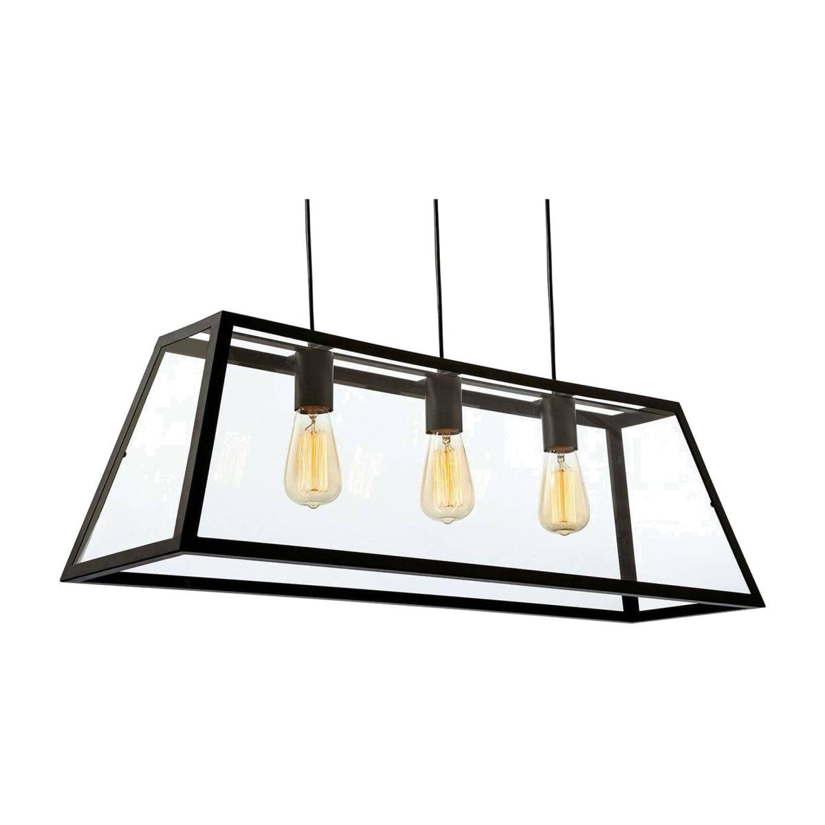 Open your decorating style up to new concepts with the Kew 3-Light Black and Glass Ceiling Pendant. The glorious pendant fixture has a black finish for versatility and clear glass panes for the light to shine brightly. Position it over a table or kitchen island for dramatic interest.