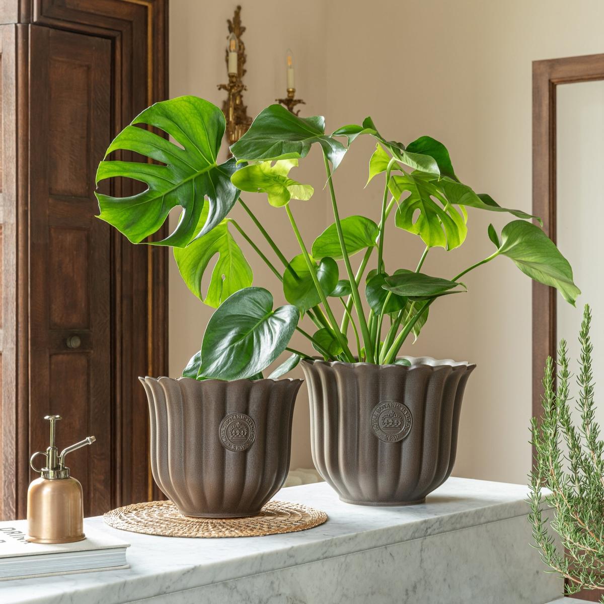 * Indoor Planter* Whimsical Tulip shaped design* Available in a 27cm and 32cm diameter* Durable Composition Add a touch of elegance to your home with the Kew Fluted Tulip Mocha Planter, featuring a whimsical tulip shape and rich mocha hue. Embossed with the Kew Gardens logo, this planter is perfect for showcasing your indoor plants or as a decorative statement on its own.