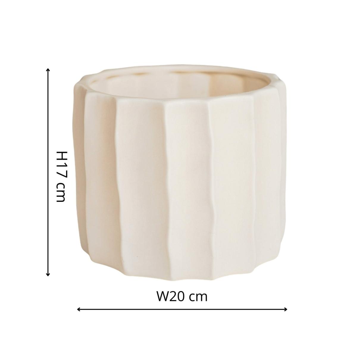 * Indoor Planter* Trend driven, elegant ripple design* Available in a 20cm and 22cm diameter The Kew Organic Ripple Bone Planter offers a sleek, contemporary vibe with its elegant ripple design and satin glaze. Made in Europe, this hand-moulded planter is available in two sizes and provides a stunning home for your favourite plants, making it a standout piece in any setting.