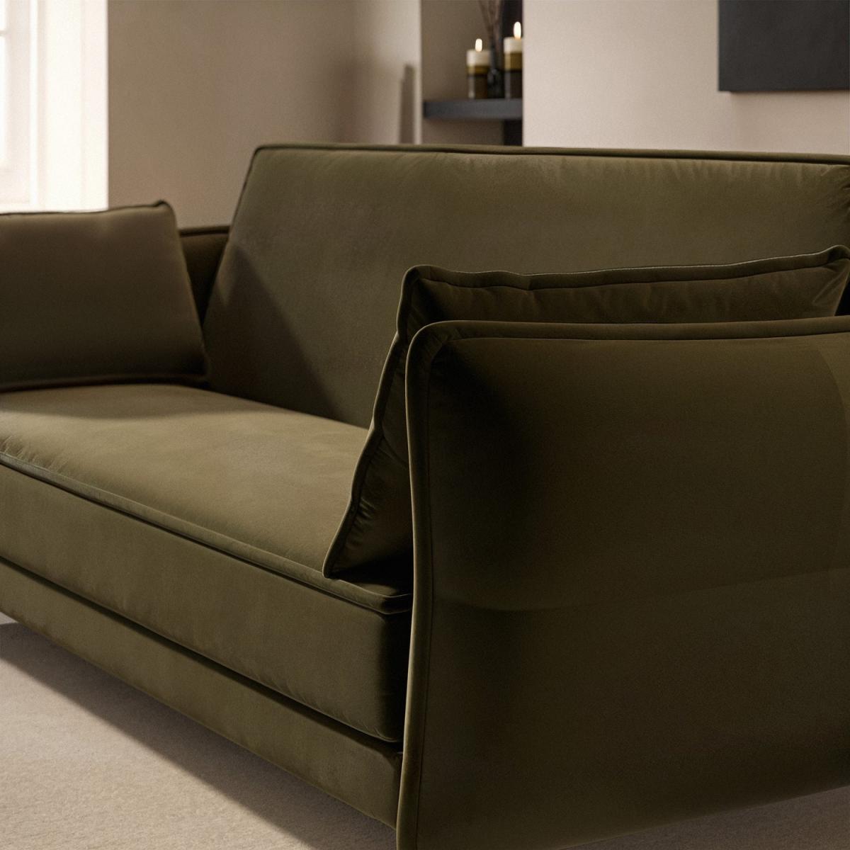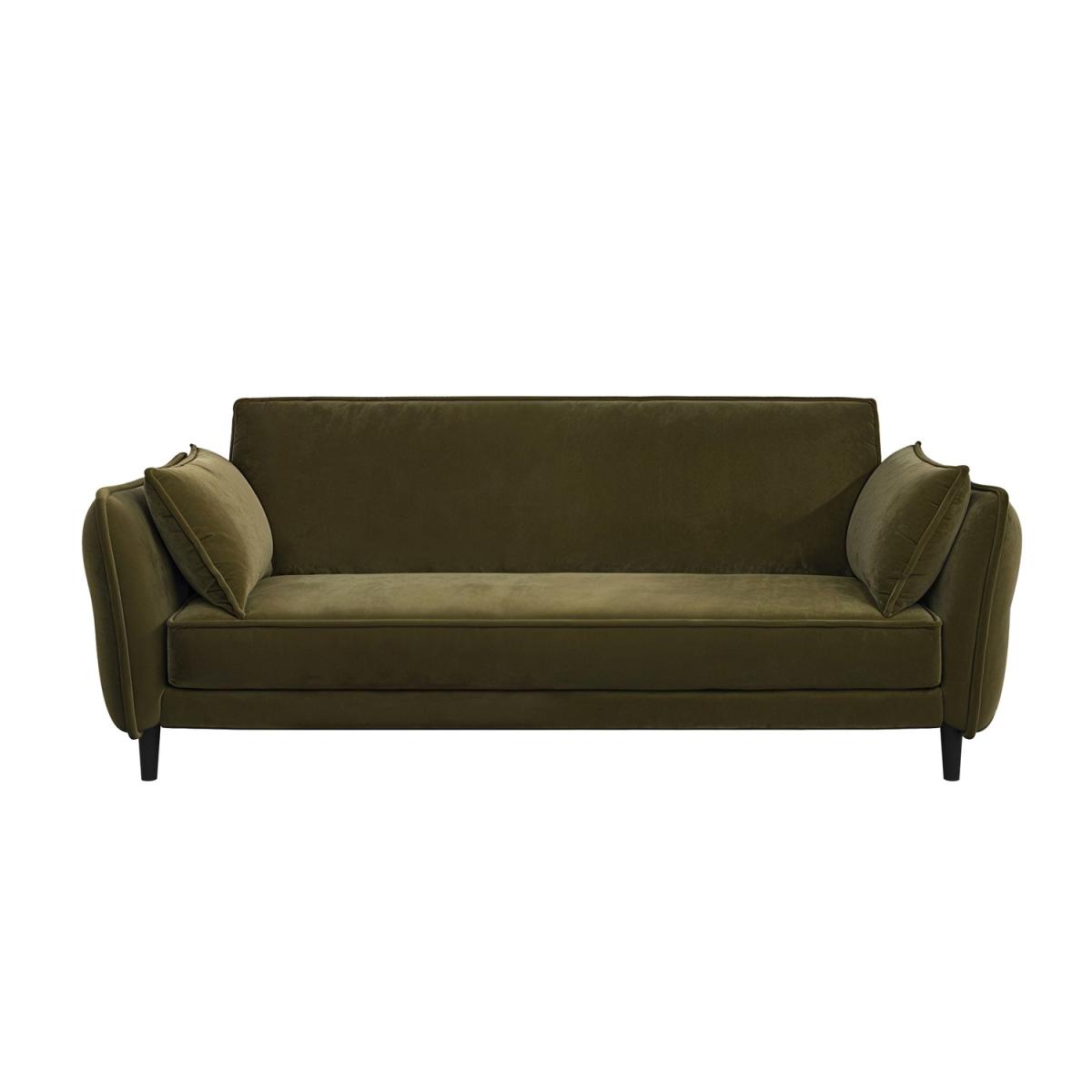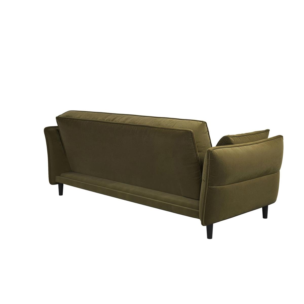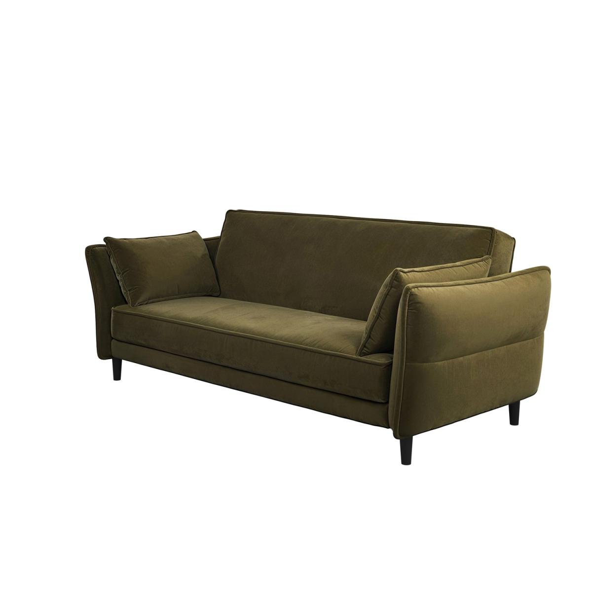 Foam filled Wrapped throughout in a calming Khaki Green velvet, this piece adds a warm and relaxing splash of colour and texture to any living space. Quickly transform from a cosy sofa to a spacious bed, ideal for overnight guests and small spaces. The arms fold out to provide a comfy headrest and ensure your guests can stretch out and relax A built-in mattress and plush cushioning provide cosy seating and ensure a restful sleep. Ideal for small apartments, guest rooms, or multipurpose spaces, offering seating and sleeping in one smart design. The Bobby Sofa Bed is perfect for overnight guests. It effortlessly transforms from a cosy 3-seater to a spacious double bed with a smooth click-clack mechanism. It features a fold-out foam layer to add to the comfort and ensure a great night's sleep. Its sleek silhouette is fully upholstered in a calming khaki green velvet, keeping it looking great wherever you choose to place it in the room. The armrests fold out to provide the perfect headrest and keep you comfy for a restful night’s sleep. Two matching scatter cushions are included to complete the look and add extra comfort.