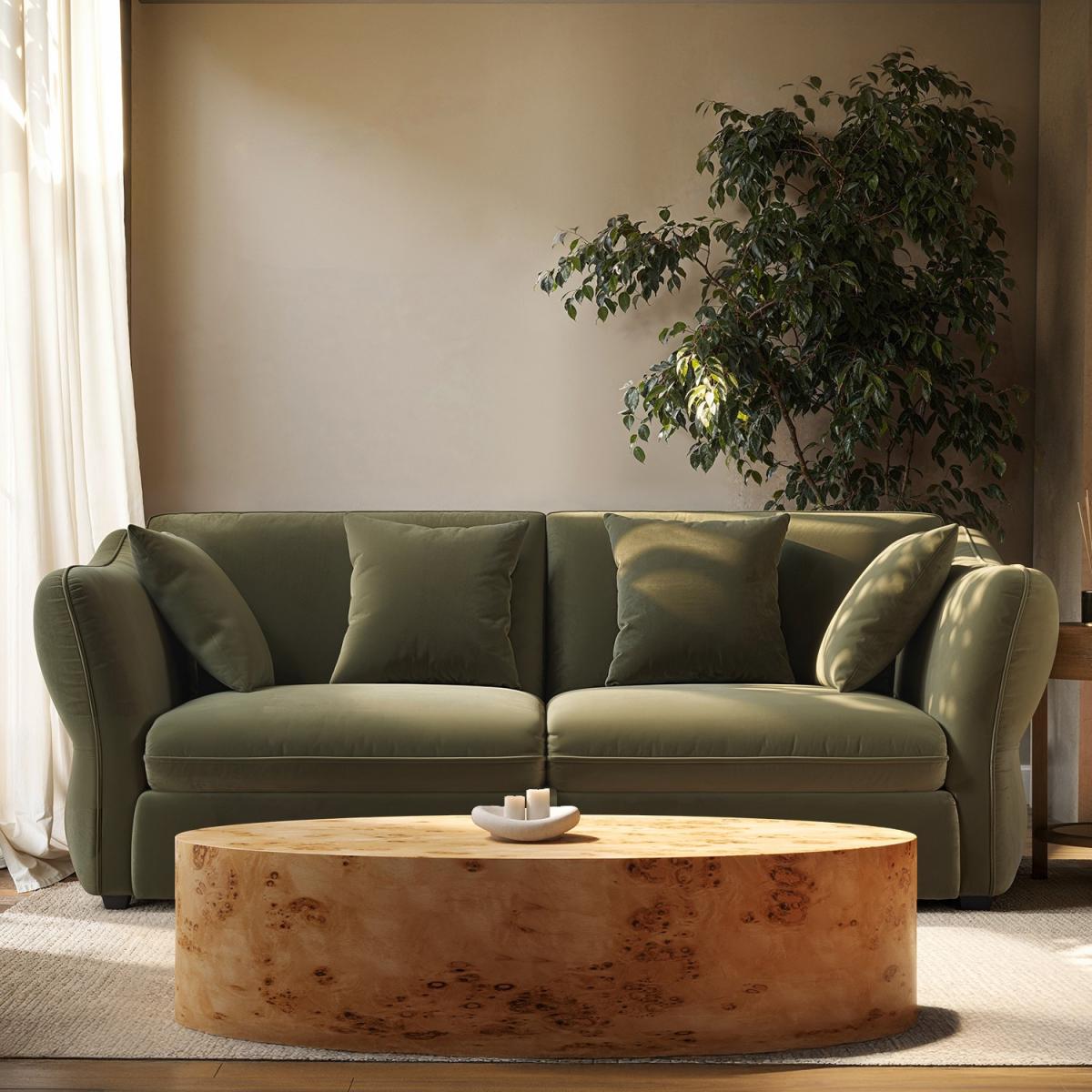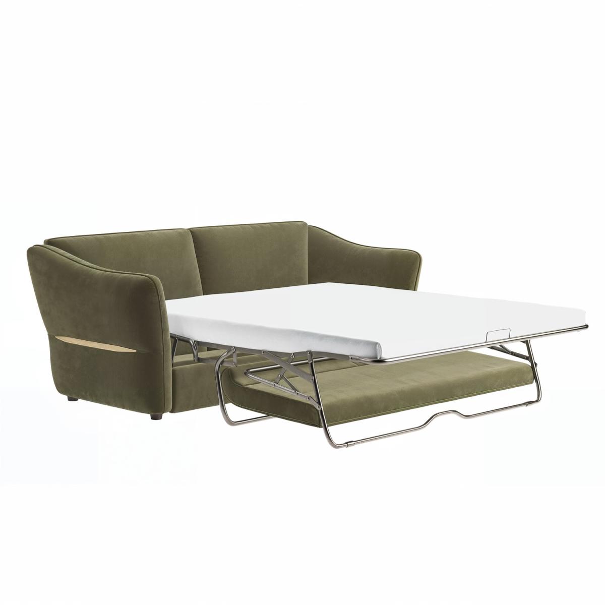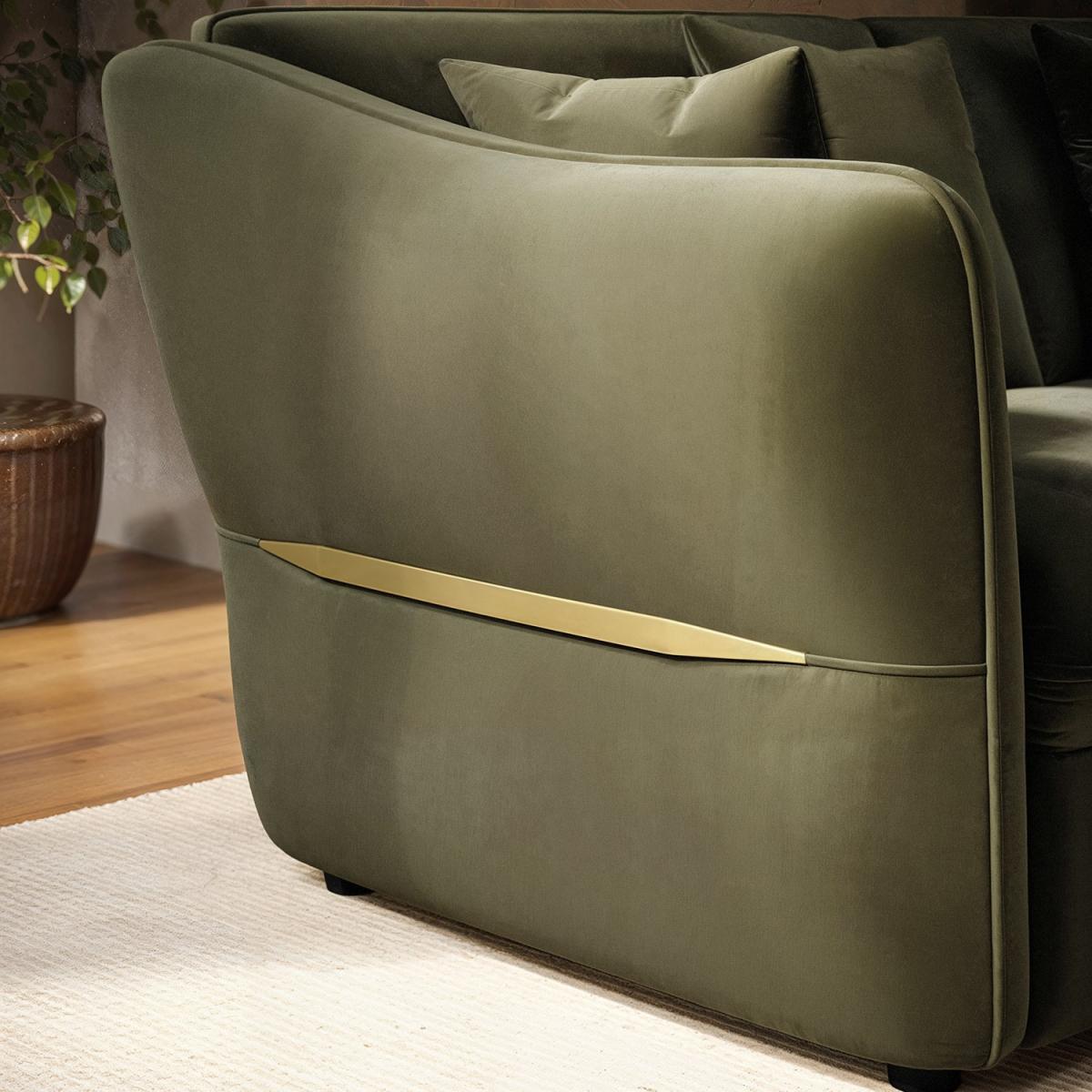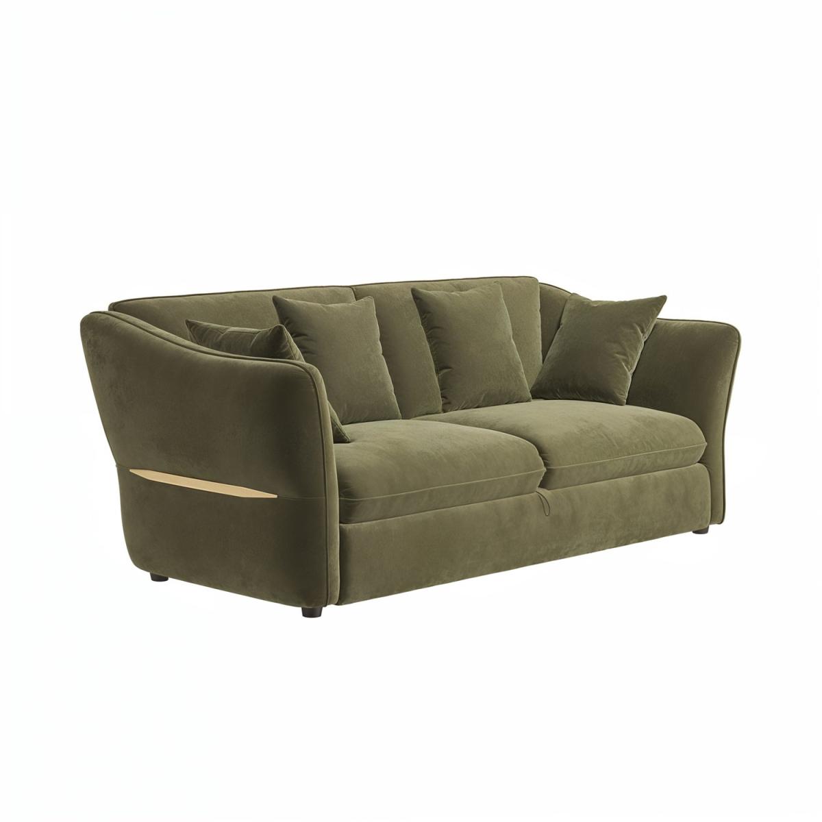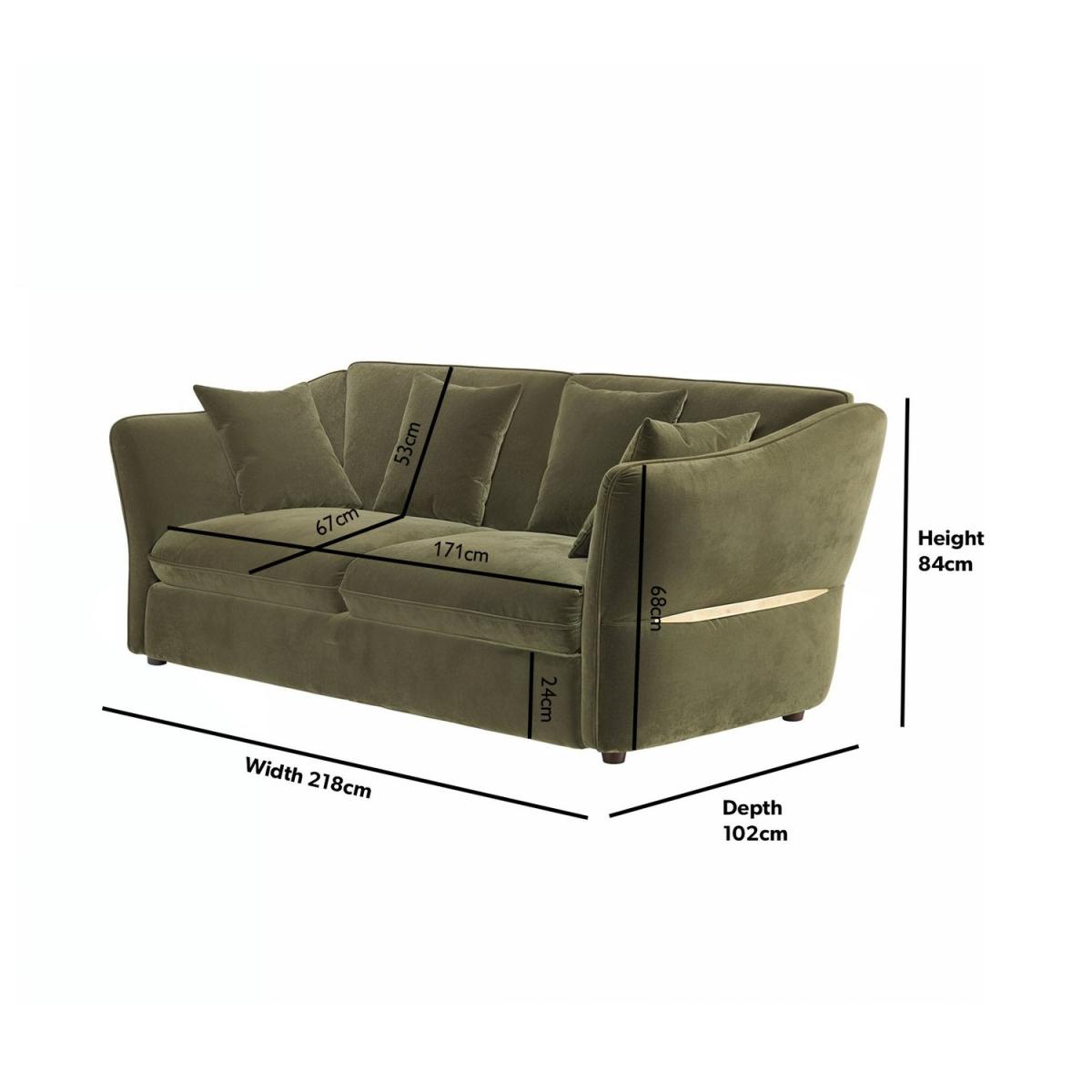 Foam filled The velvet upholstery and curved armrests give it a luxurious, sophisticated look that enhances any interior. Quickly transforms from a cosy sofa to a spacious bed with the simple pull-out mechanism, ideal for guests and small spaces. Carmela is upholstered throughout in a calming khaki green and features gold accents on the arms for a stunning look from any angle. A built-in mattress and plush cushioning provide cosy seating and ensure a restful sleep. Ideal for small apartments, guest rooms, or multipurpose spaces, offering seating and sleeping in one smart design. Add a touch of elegance to your home with the Carmela 3-Seater Sofa Bed. Its luxurious velvet upholstery, curved armrests, and plush cushions create a stylish and inviting look. It effortlessly transforms from a cosy 3-seater sofa into a spacious double bed with its pull-out mechanism, making it perfect for guests or everyday relaxation. The adjustable mattress angle ensures a great night’s sleep and provides ultimate comfort. It comes with four matching scatter cushions for added style and support. Crafted from a durable wooden sofa frame and a sturdy metal bed frame, it's built to last.