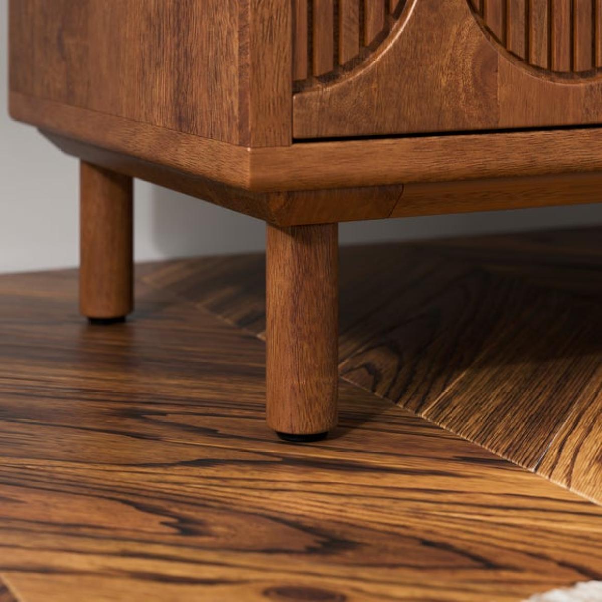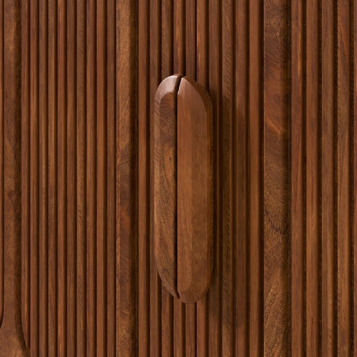 * Made from solid mango wood * Four doors and three drawers for generous storage * Adjustable shelves for flexible organisation * Retro-inspired design with grooved detailing With a nod to retro styling, the Khari Sideboard brings together bold design and practical storage. Its grooved doors and warm mango wood finish give it a distinctive look that works across a range of interiors. The extra-wide frame offers plenty of room for everything from dinnerware to board games. Adjustable shelves mean you can tailor the space to suit your needs. Whether it’s in the dining room or hallway, it’s built to keep things tidy and look good doing it.