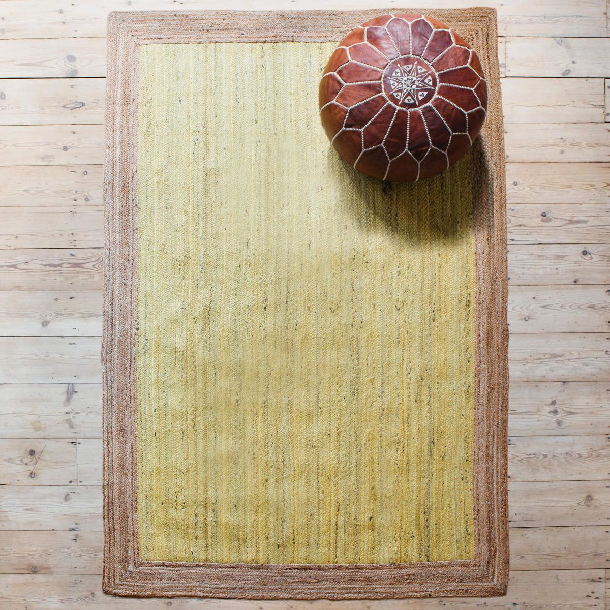 In a soft light yellow with a natural border, freshen up your kitchen or sitting room with this bright jute rug.