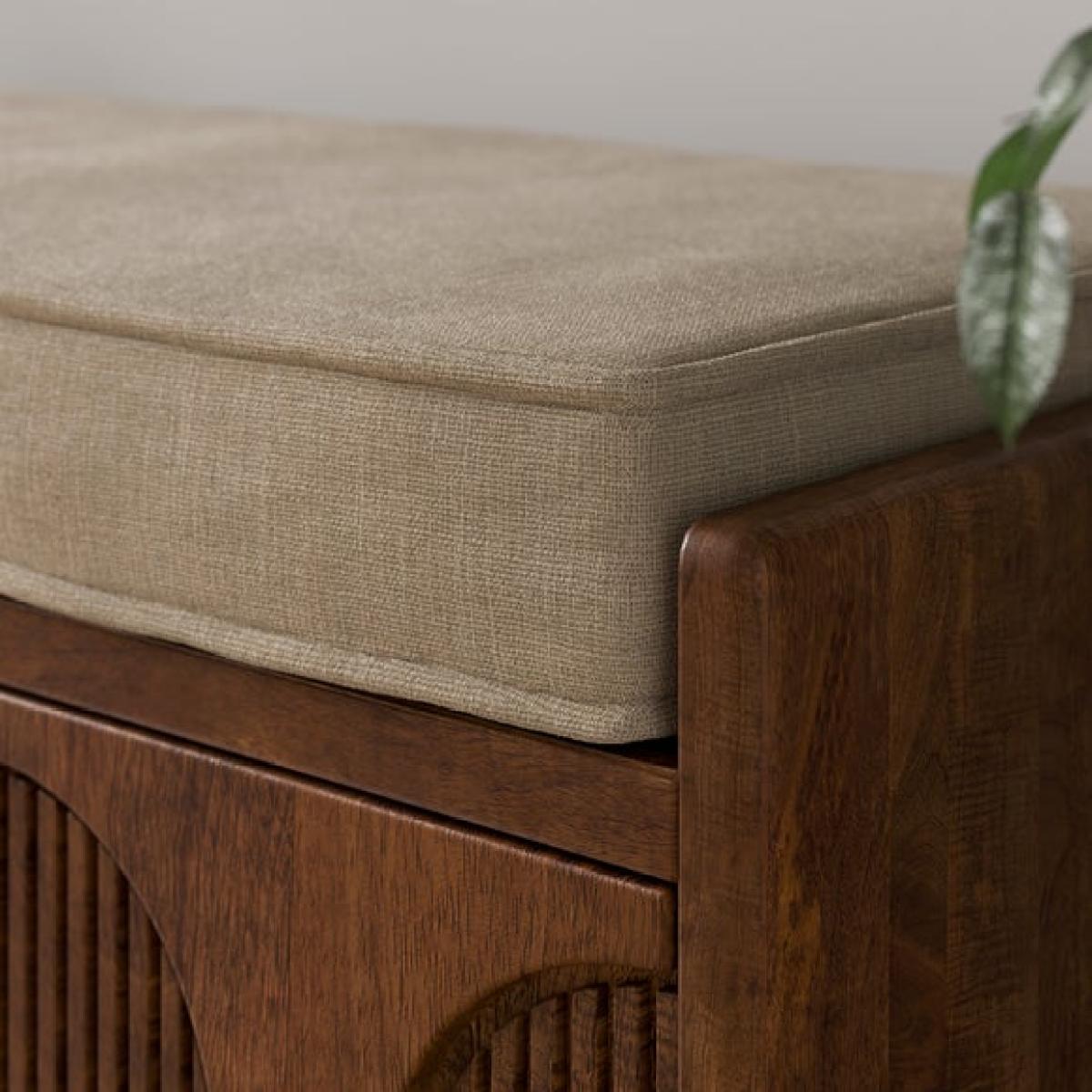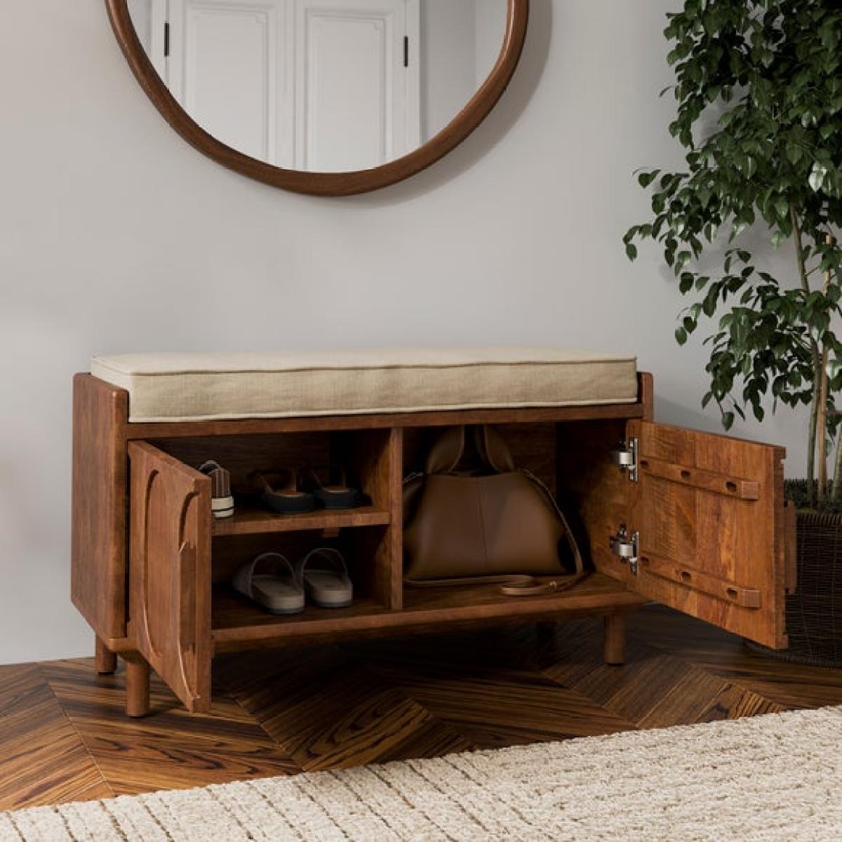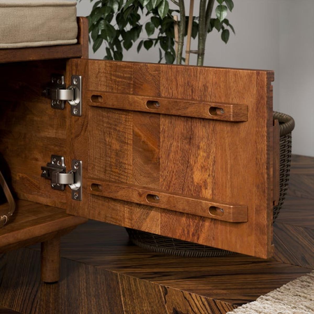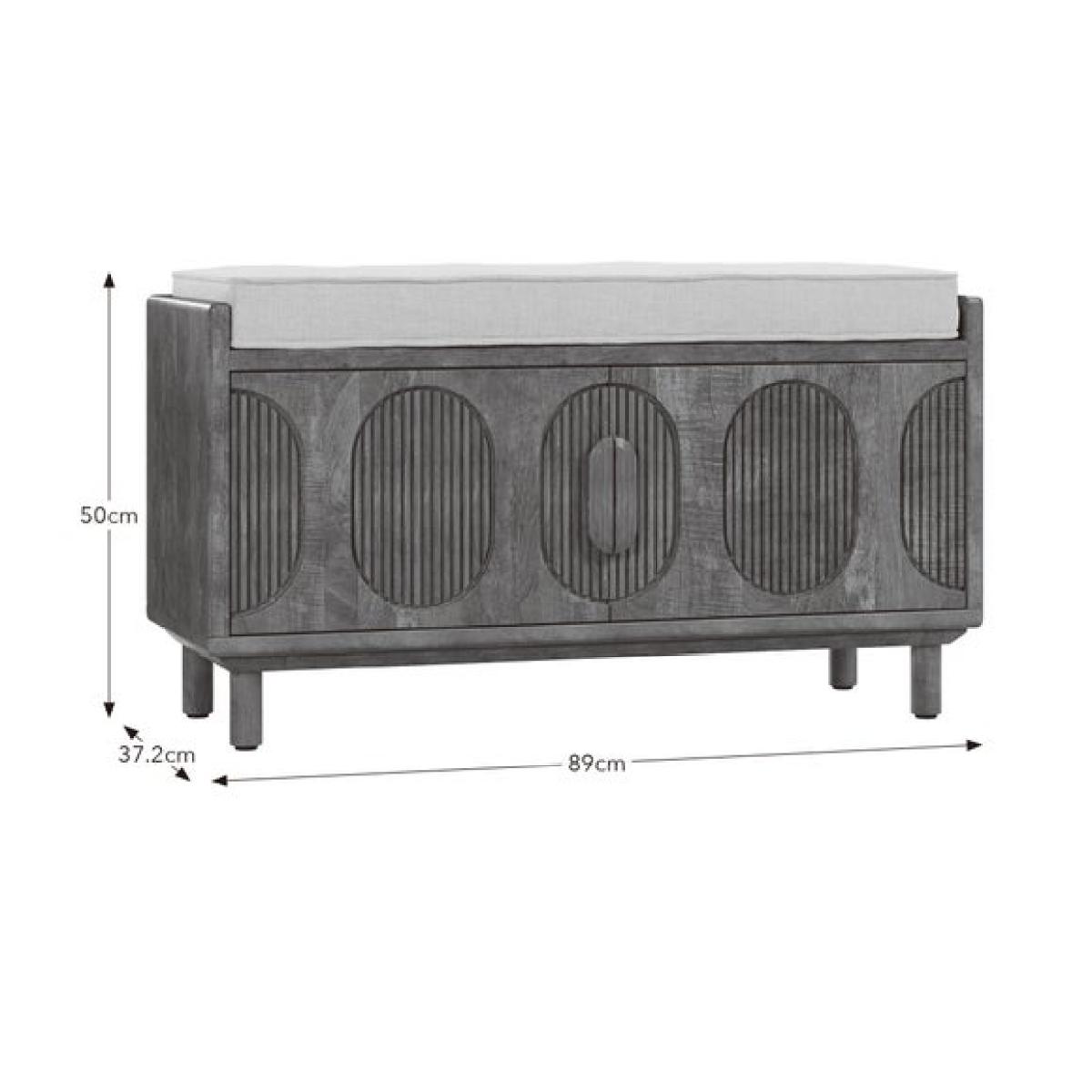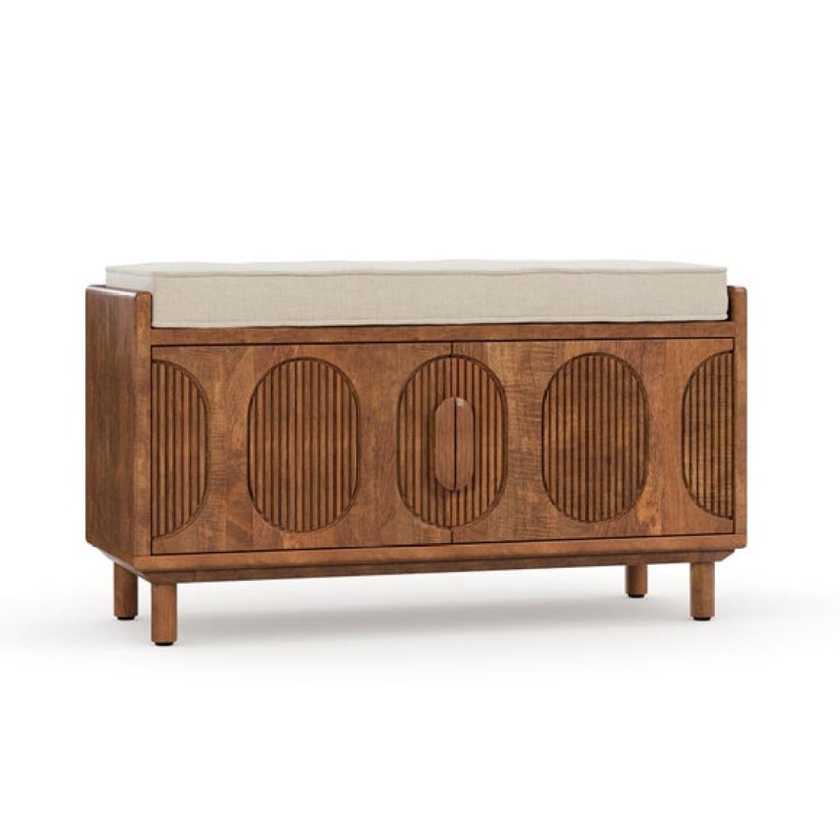 Dunelm Exclusive - Designed and Developed by Dunelm * Storage bench with cushion * Mango wood construction * Retro-inspired look * Slatted Fronts * 2 Cupboards