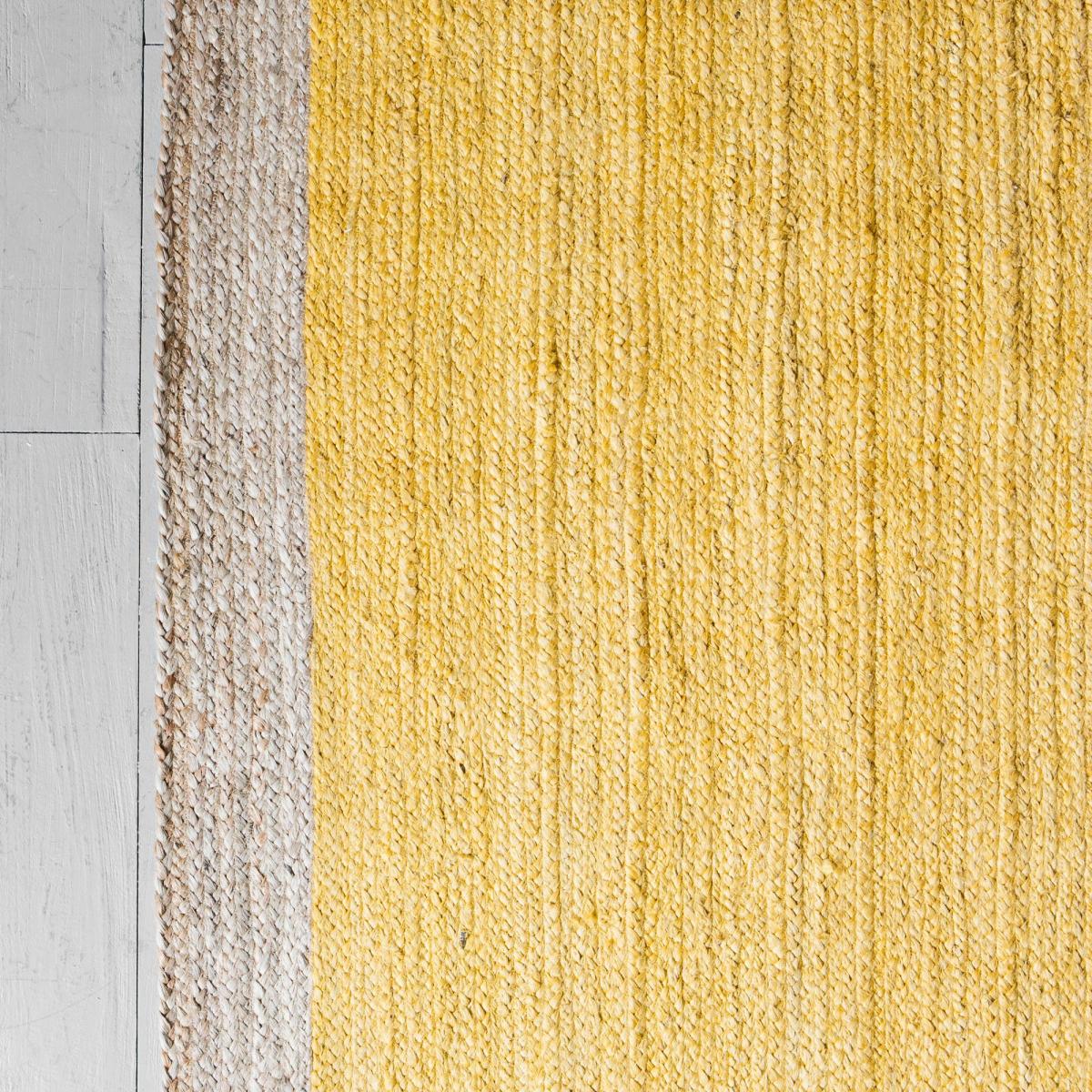 Gorgeously vibrant in a stunning sunny yellow and a natural border. Made of jute, this rug will brighten up any room.