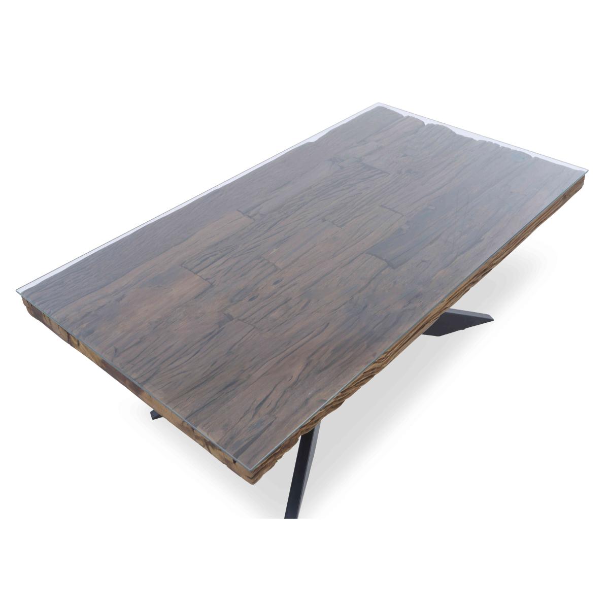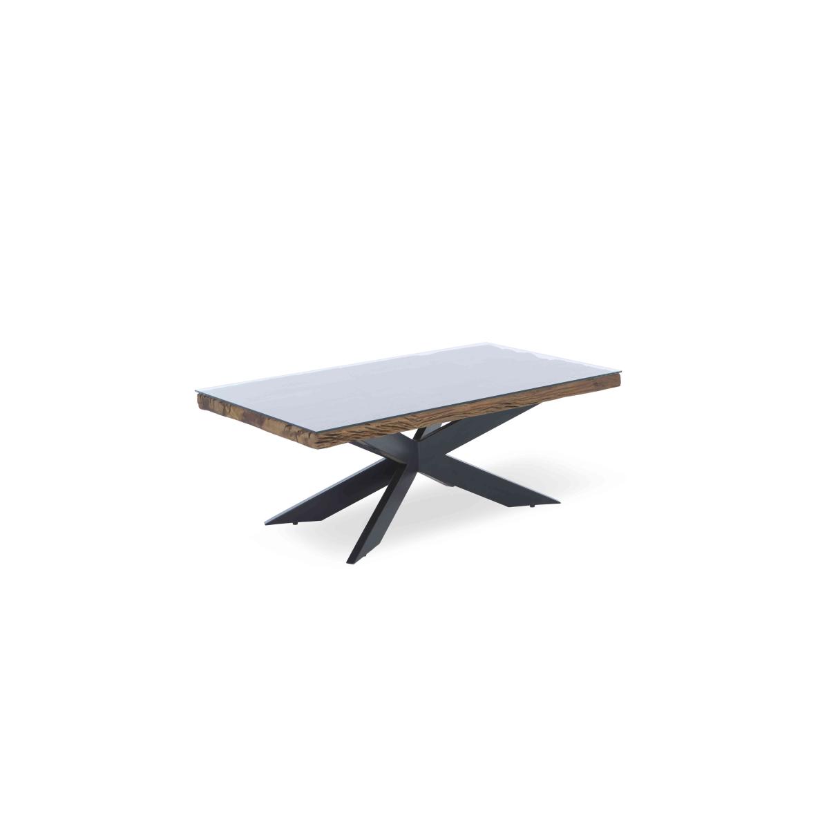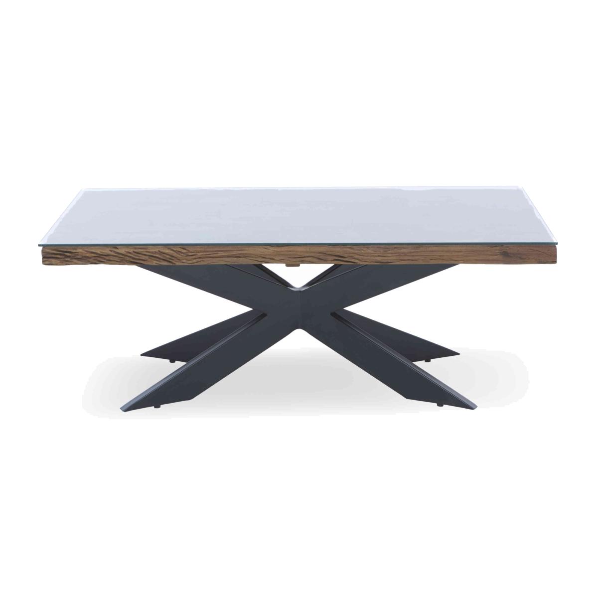 Handcrafted from reclaimed railway sleepers sourced from India and showcasing a creative and striking combination of wood, glass and metal, the furniture in our Kiara collection will appeal to anyone who loves rustic, vintage or bohemian furniture that has a more ethical footprint. Dining tables and living room tables are topped with glass for a touch of sleek style – and to better appreciate the glorious woodgrain beneath – and have sturdy metal bases. This extensive range features a wide selection of dining tables, dining sets, storage furniture and occasional tables for a characterful look that you can enjoy in both your living room and dining room. This handcrafted coffee table brings together reclaimed wood and black metal in striking style. The glass top makes it very family friendly. Why you'll love it Statement style for industrial, eclectic and bohemian homes. Fabulous combination of wood, glass and metal. Made from reclaimed railway sleepers sourced from India. Every table is unique. The glass top adds contemporary flair and helps preserve the surface. Black metal star-shaped base. Handcrafted. This coffee table is part of the Kiara range. What you need to know This coffee table’s wood top will vary in shade and texture across its surface. Filler is used in certain areas to improve the appearance of the wood. The glass top may not be exactly the same size as the wood table top.