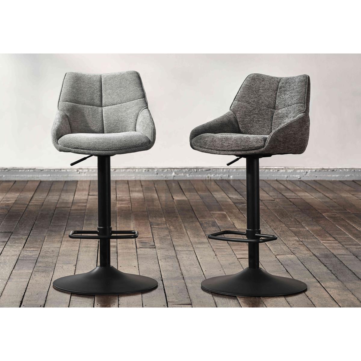 Handcrafted from reclaimed railway sleepers sourced from India and showcasing a creative and striking combination of wood, glass and metal, the furniture in our Kiara collection will appeal to anyone who loves rustic, vintage or bohemian furniture that has a more ethical footprint. Dining tables and living room tables are topped with glass for a touch of sleek style – and to better appreciate the glorious woodgrain beneath – and have sturdy metal bases. This extensive range features a wide selection of dining tables, dining sets, storage furniture and occasional tables for a characterful look that you can enjoy in both your living room and dining room. This set of four bar stools makes it easy to turn casual kitchen diner mealtimes into something more sophisticated. And with swivel bases, these bar stools are ideal for more compact dining spaces. Why you'll love it Set of 4 wonderfully comfortable bar stools. Statement dining style for any home. Swivel bases make life easier for your guests. Black metal legs. Soft fabric upholstery in a choice of colours. Also available in a set of 2 bar stools. This set of 4 swivel bar stools is part of the Kiara range. What you need to know Metal frames and legs. Cushioned with foam.
