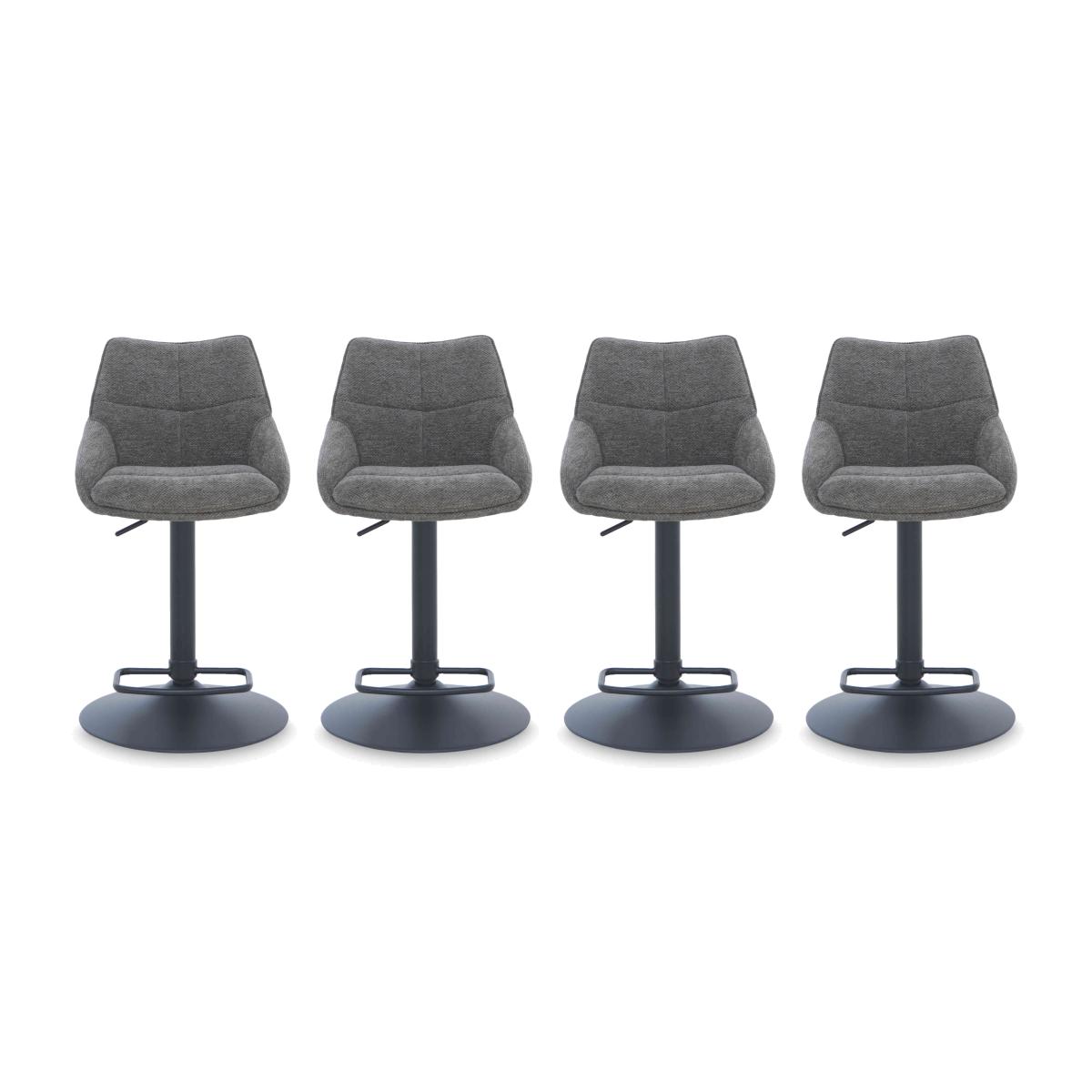 Handcrafted from reclaimed railway sleepers sourced from India and showcasing a creative and striking combination of wood, glass and metal, the furniture in our Kiara collection will appeal to anyone who loves rustic, vintage or bohemian furniture that has a more ethical footprint. Dining tables and living room tables are topped with glass for a touch of sleek style – and to better appreciate the glorious woodgrain beneath – and have sturdy metal bases. This extensive range features a wide selection of dining tables, dining sets, storage furniture and occasional tables for a characterful look that you can enjoy in both your living room and dining room. This set of four bar stools makes it easy to turn casual kitchen diner mealtimes into something more sophisticated. And with swivel bases, these bar stools are ideal for more compact dining spaces. Why you'll love it Set of 4 wonderfully comfortable bar stools. Statement dining style for any home. Swivel bases make life easier for your guests. Black metal legs. Soft fabric upholstery in a choice of colours. Also available in a set of 2 bar stools. This set of 4 swivel bar stools is part of the Kiara range. What you need to know Metal frames and legs. Cushioned with foam.