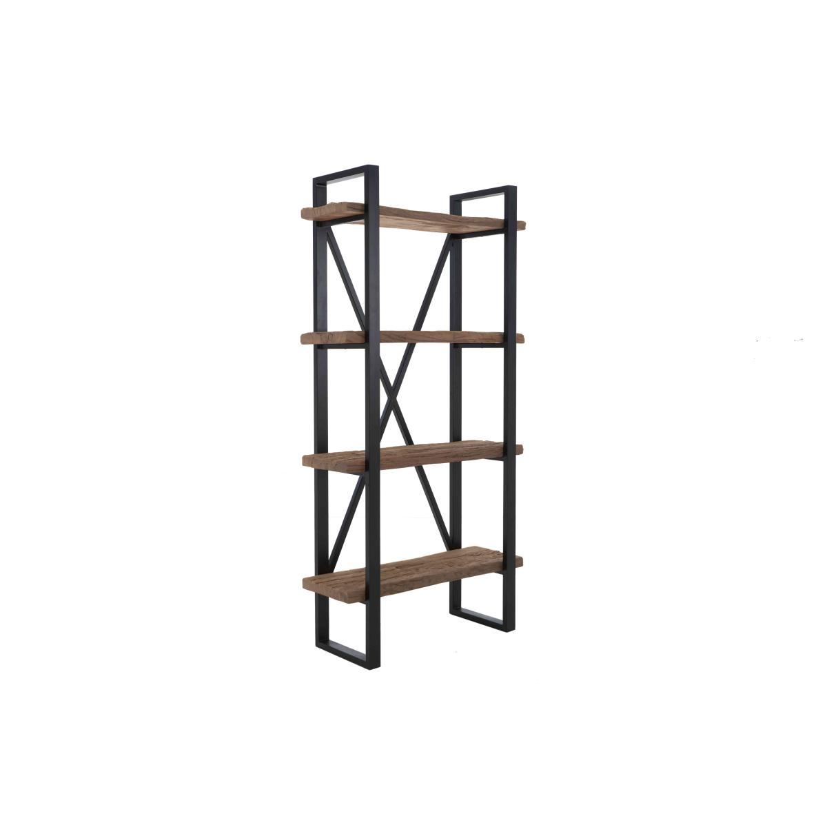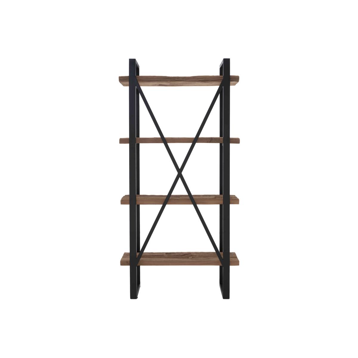 Handcrafted from reclaimed railway sleepers sourced from India and showcasing a creative and striking combination of wood, glass and metal, the furniture in our Kiara collection will appeal to anyone who loves rustic, vintage or bohemian furniture that has a more ethical footprint. Dining tables and living room tables are topped with glass for a touch of sleek style – and to better appreciate the glorious woodgrain beneath – and have sturdy metal bases. This extensive range features a wide selection of dining tables, dining sets, storage furniture and occasional tables for a characterful look that you can enjoy in both your living room and dining room. Simple, stylish and very practical, this four-shelf shelving unit is perfect for books, plants, ceramics and more. Handcrafted from mango wood and reclaimed railway sleeper wood. Why you'll love it Statement storage for industrial, eclectic and bohemian homes. Fabulous combination of wood and metal. Made from mango wood and reclaimed railway sleepers sourced from India. Every shelving unit is unique. Black metal frame and U-shaped legs. Handcrafted. This shelving unit is part of the Kiara range. What you need to know 4 shelves. This wood used to make this shelving unit will vary in shade and texture across its surface. Filler is used in certain areas to improve appearance of the wood. The glass top may not be exactly the same size as the wood table top.