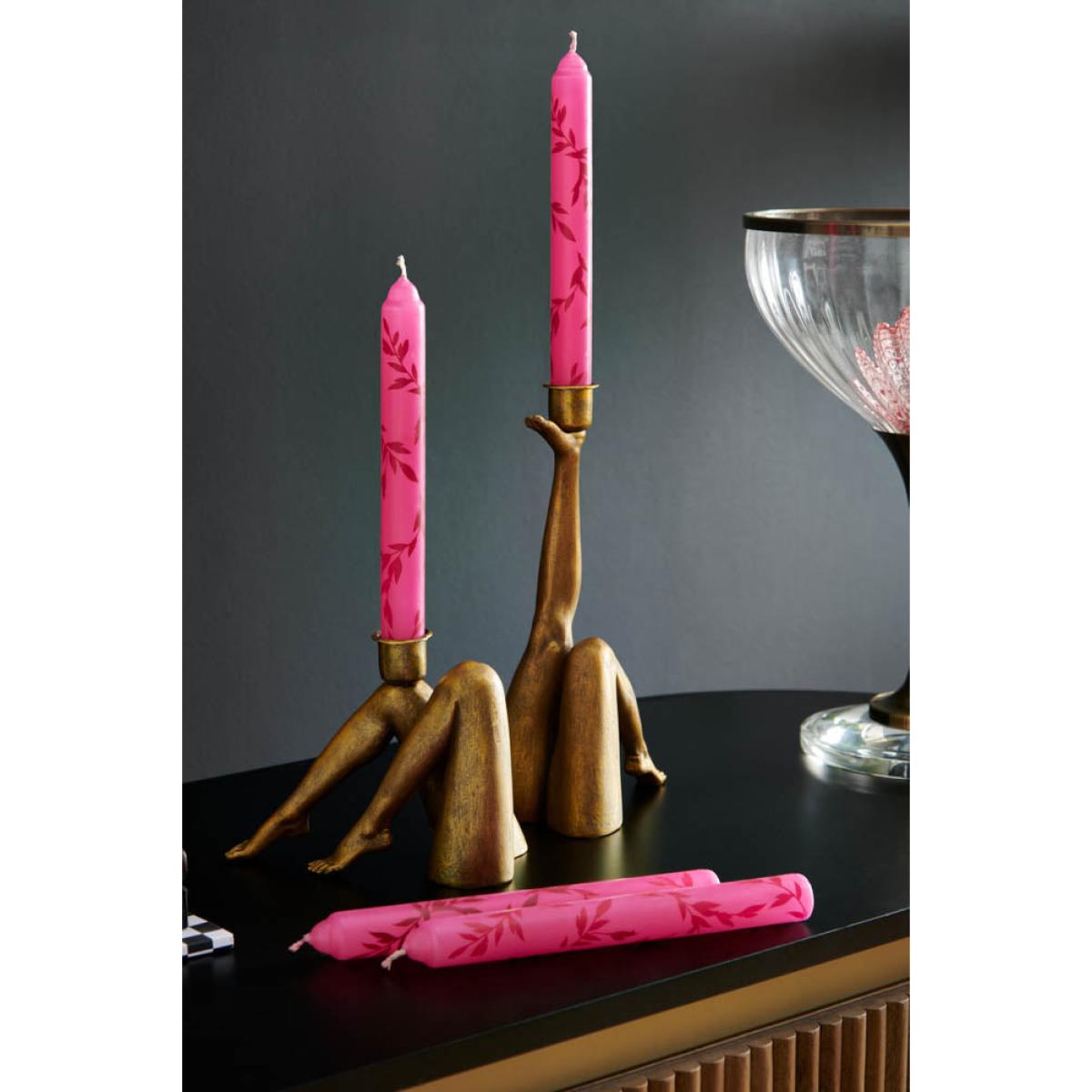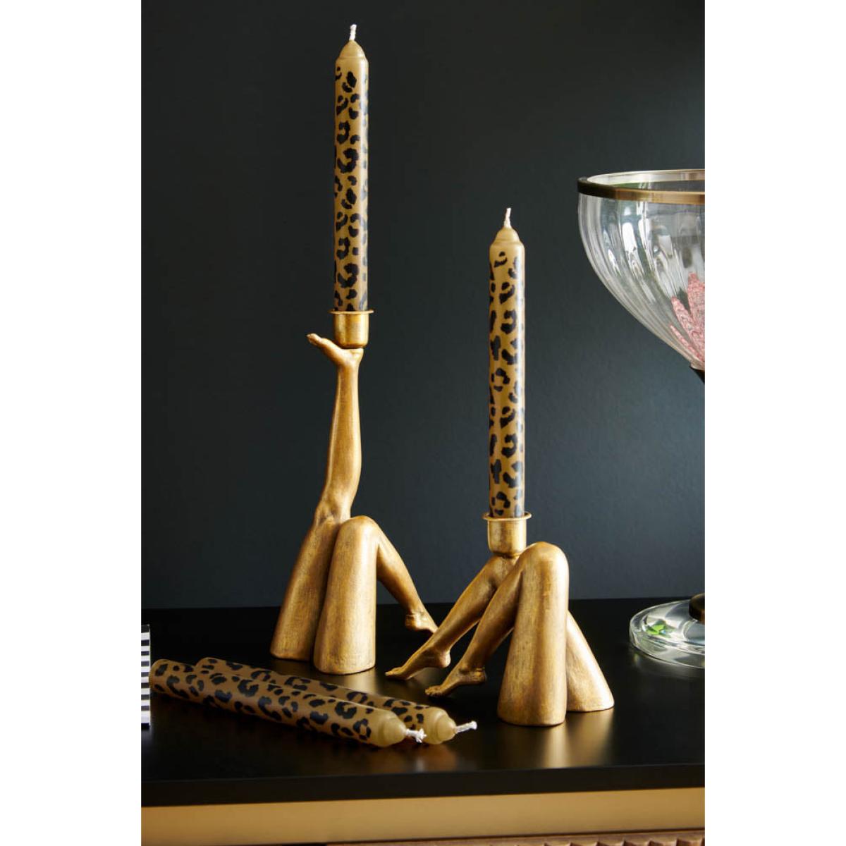 Take inspiration from this quirky candle holder and kick up your heels and relax! This is super-fun kitsch at its best, and looks fabulous styled on a mantelpiece or as part of a tablescape. Team with bold, bright candles (try an eye-popping pink, or animal print) and line up three or four of these in a row for a Cancan effect worthy of the Moulin Rouge. We love the way the tops of the legs just appear to sink into the shelf or sideboard below – it's a visual trick to make you look twice. Clever!- Kick Leg Candle Holder made from resin- Measures: H23cm x W13cm - SAFETY NOTE:Never leave a lit candle unattended