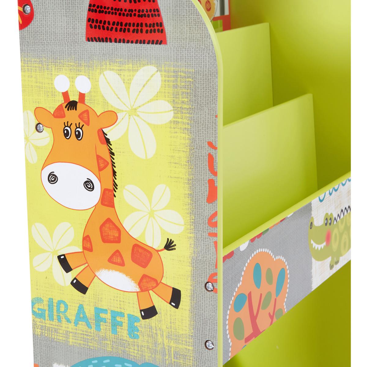 Looking for a fun but practical storage solution for your child's space, introducing our Kid Safari Bookshelf Unit. This unit is ideal for storing all your child's books and small toys. On the unit is 3 book display shelves where your children can display their books. The large storage shelf at the bottom of the unit is ideal for larger books, small toys or board games. The unit has fun, friendly animals featuring on the panels. Coordinating items are available so you can create a whole safari-themed space. This bookshelf has been safety tested for strength and stability. The unit has had a lacquer coating to protect against scratches and to make the unit easier to clean. Any accessories shown are not included unless stated.