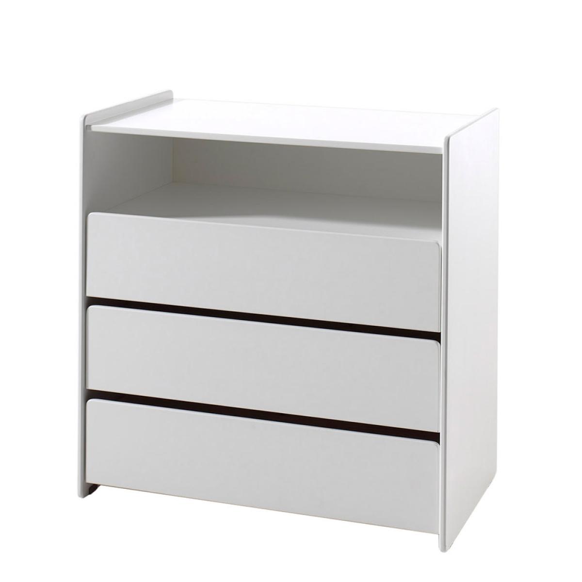 Keep your kiddies bedroom spick and span with the Kiddy Chest of Drawers, the perfect storage solution if you're looking for simple, contemporary furniture. Manufactured from MDF and solid pine, the three large drawers offer up plenty of space for all your little one's clothes whilst the shelf is ideal for toys, books and all their random knick-knacks. Simple in its design, the fresh white colour will blend seamlessly into any interior style and would make a stunning addition to any home!.