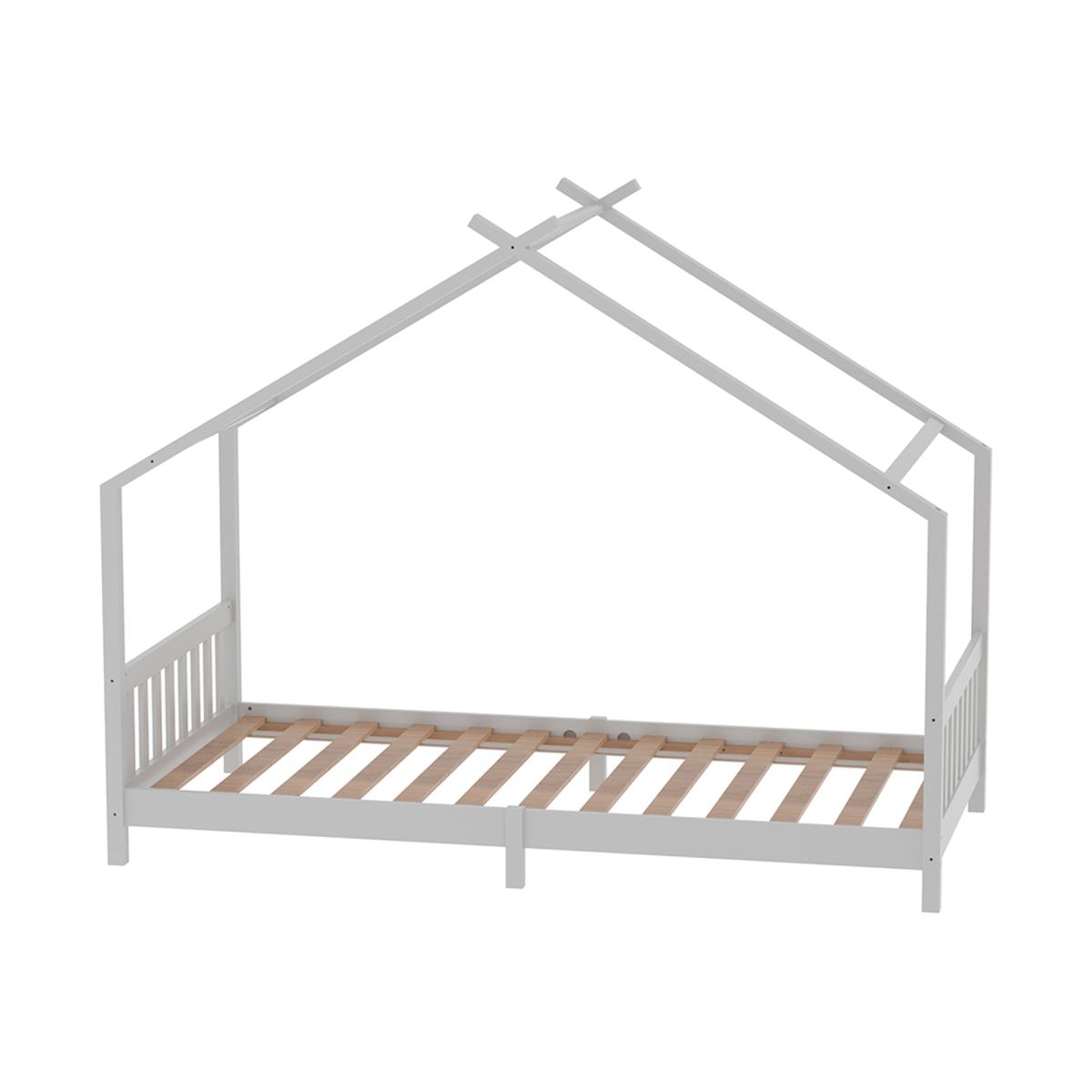 Kidkid Bed Frame Pine Wood With House Design - White