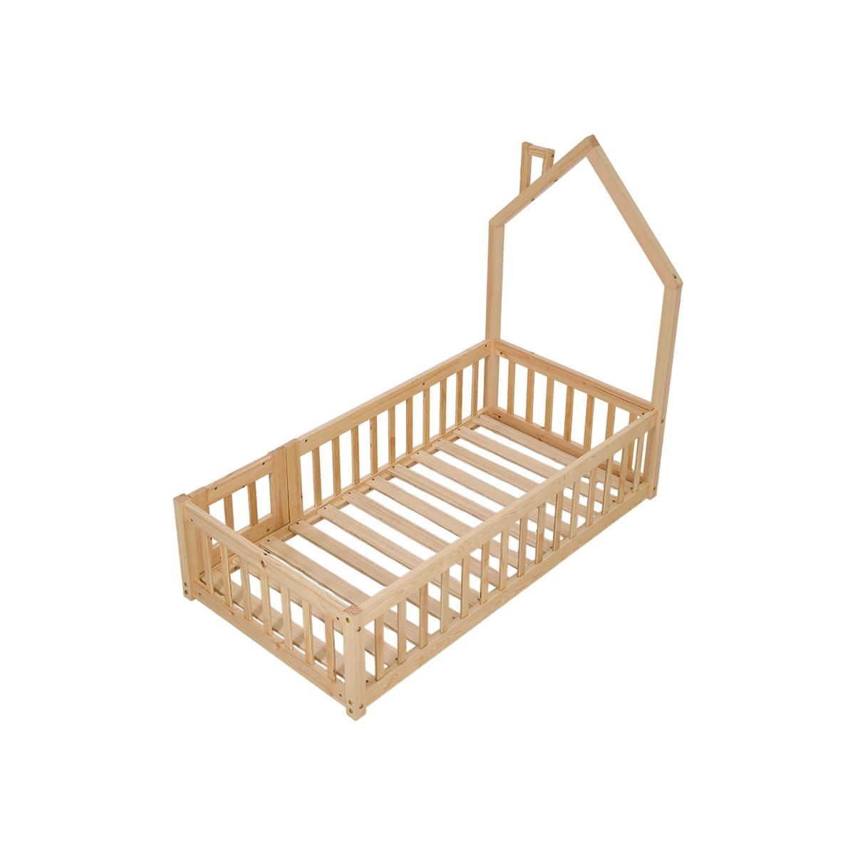 Designed for kids! Priced for families! Create a cosy and imaginative sleeping space with this house-style floor bed. The charming roof and chimney design spark curiosity and make bedtime fun. Crafted from sturdy pine wood, it ensures long-lasting stability and safety. The guardrails keep little ones secure while the base provides strong mattress support. Perfect as both a bed and a playful area for kids to grow and explore.