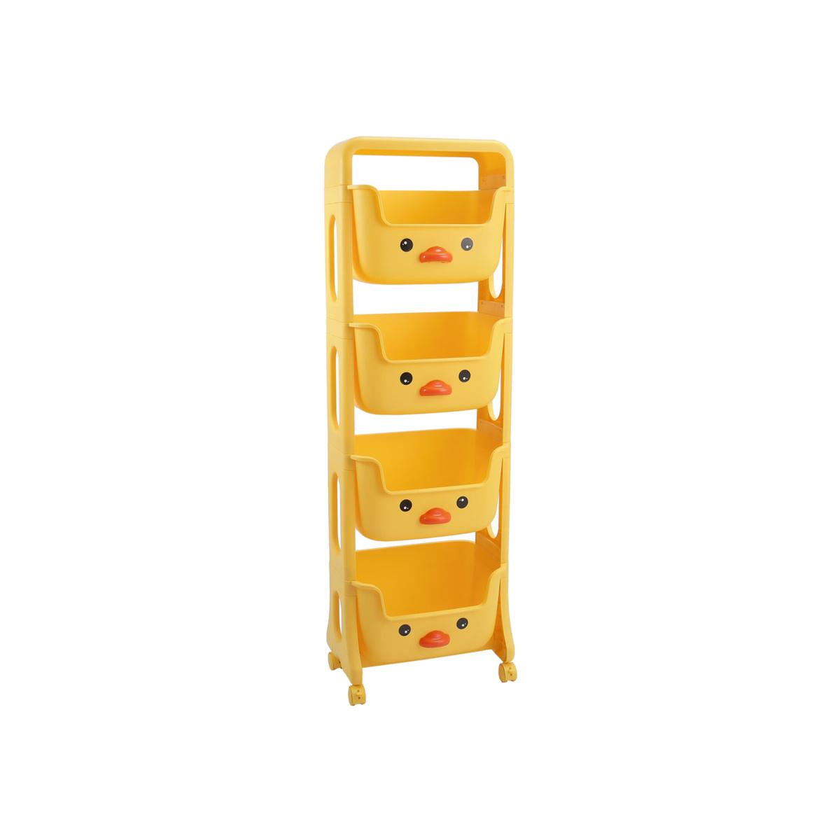 Designed for kids! Priced for families! Kidkid's mobile toy storage rack comes in 2, 3, or 4 tiers, perfect for organising toys, books, and more. The bright yellow colour and cute duck design add a playful touch to any room. Made from durable plastic, it's built to last and holds up well with daily use. Equipped with wheels, it's easy to move around your home. The strong weight capacity ensures it won't tip over, even when fully loaded.