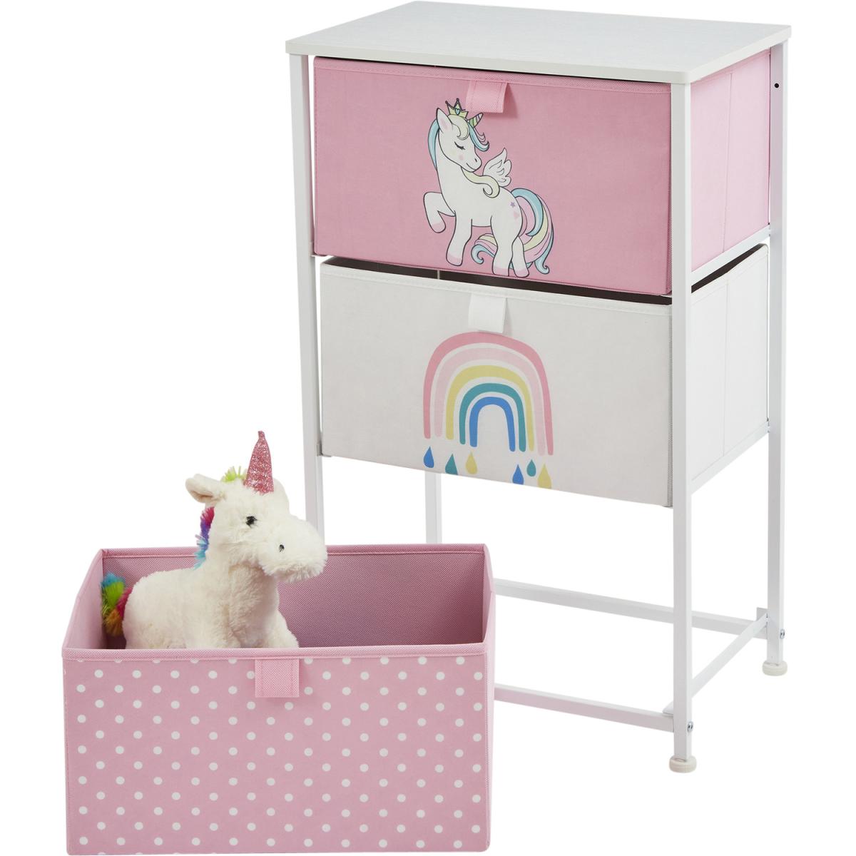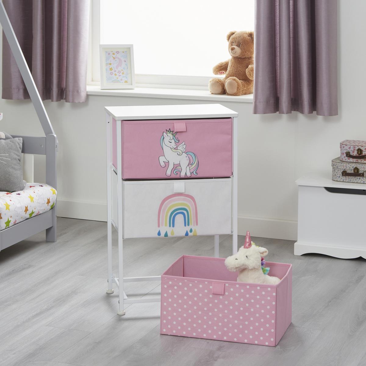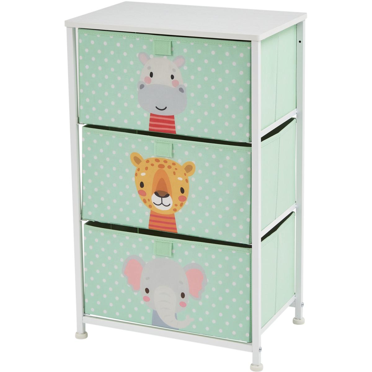 Comes in 3 styles designs dinosaurs, unicorn, and jungle. These adorable storage units come with 3 removable drawers which are great for organising toys and clothes. Alternatively, this could be the perfect nursery furniture, store your babies nappies, blankets, and essentials in this bright drawer unit. Drawers come in modern colours that will match the decor of any room. Drawers simply slide into place and each shelf has a backstop to prevent drawers from sliding out. Drawers are manufactured from breathable non-woven and soft fabric whilst the white wooden top is made from hard-wearing MDF. Our patented frame is manufactured from sturdy white steel and comes with plastic feet to protect floors from scratching. Feet are height adjustable and so uneven floors are not an issue.