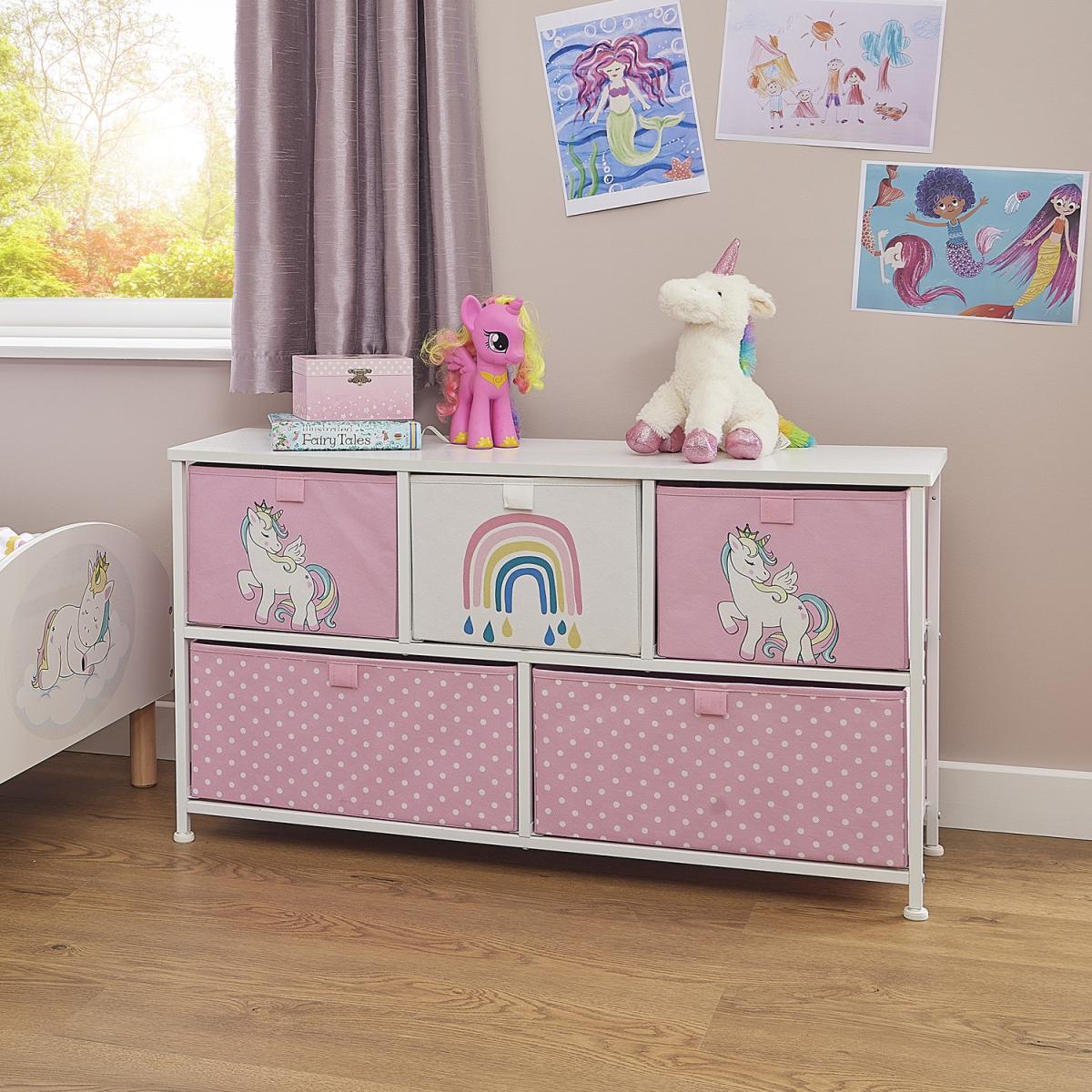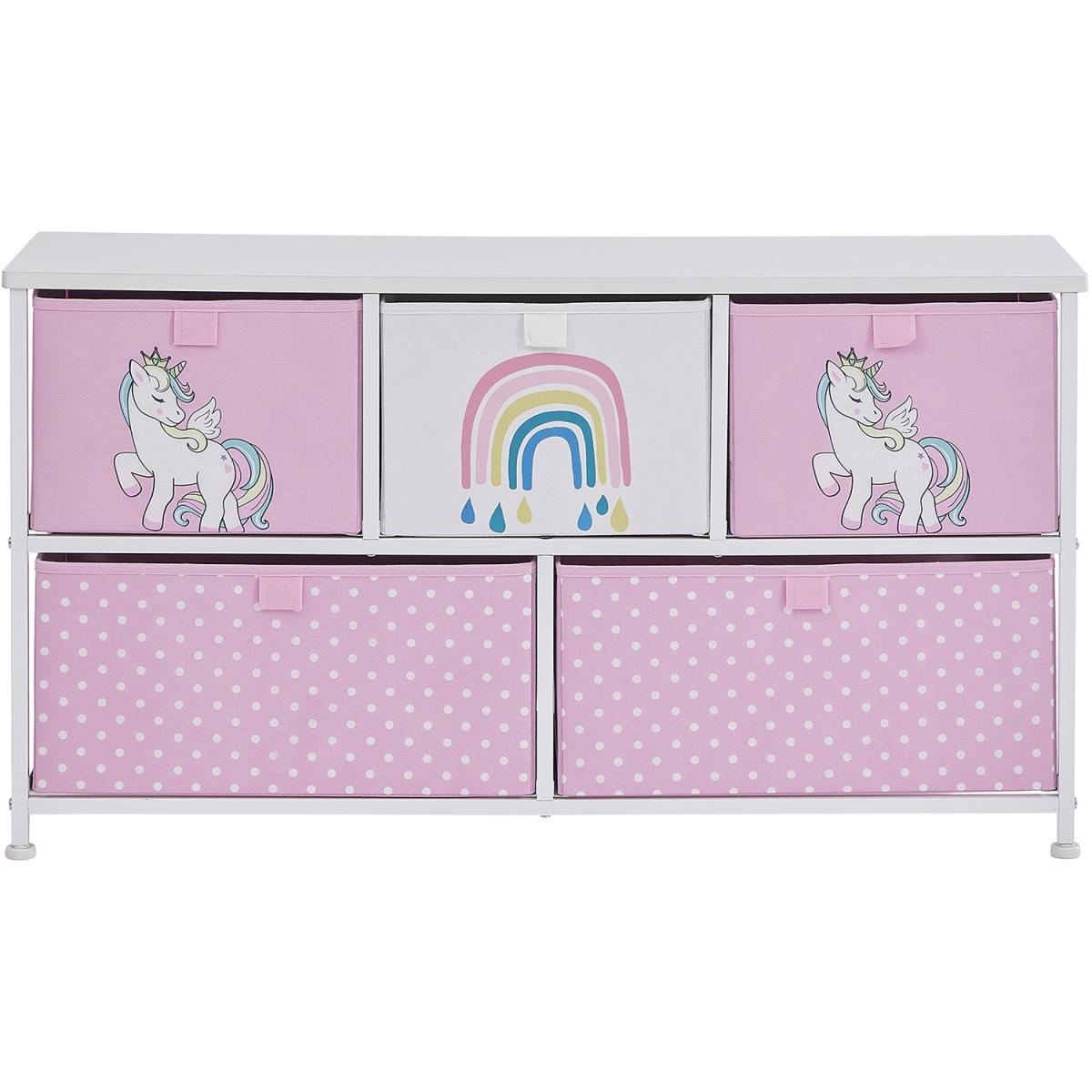 Kids 5 Drawer Storage Unit - Pink / Unicorn