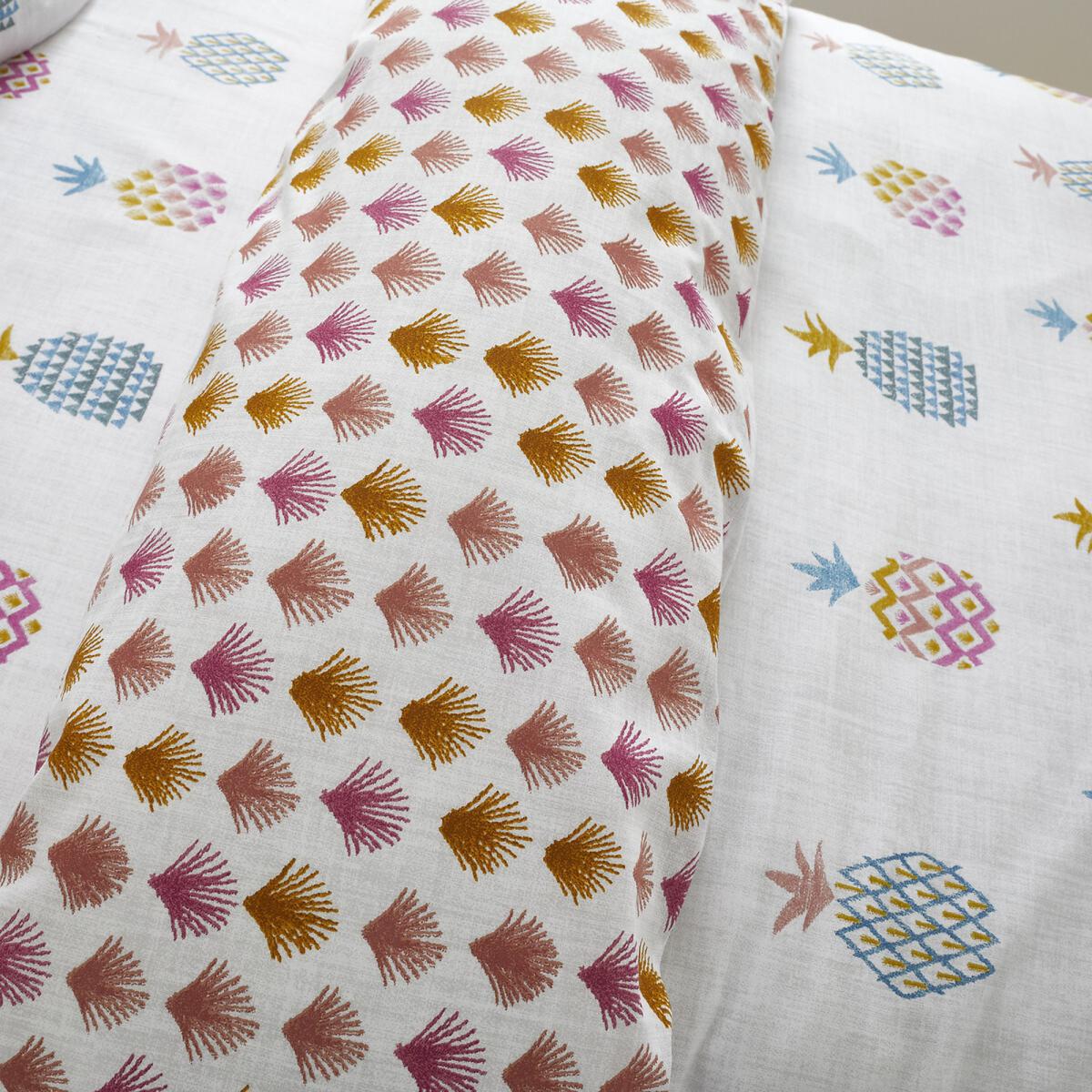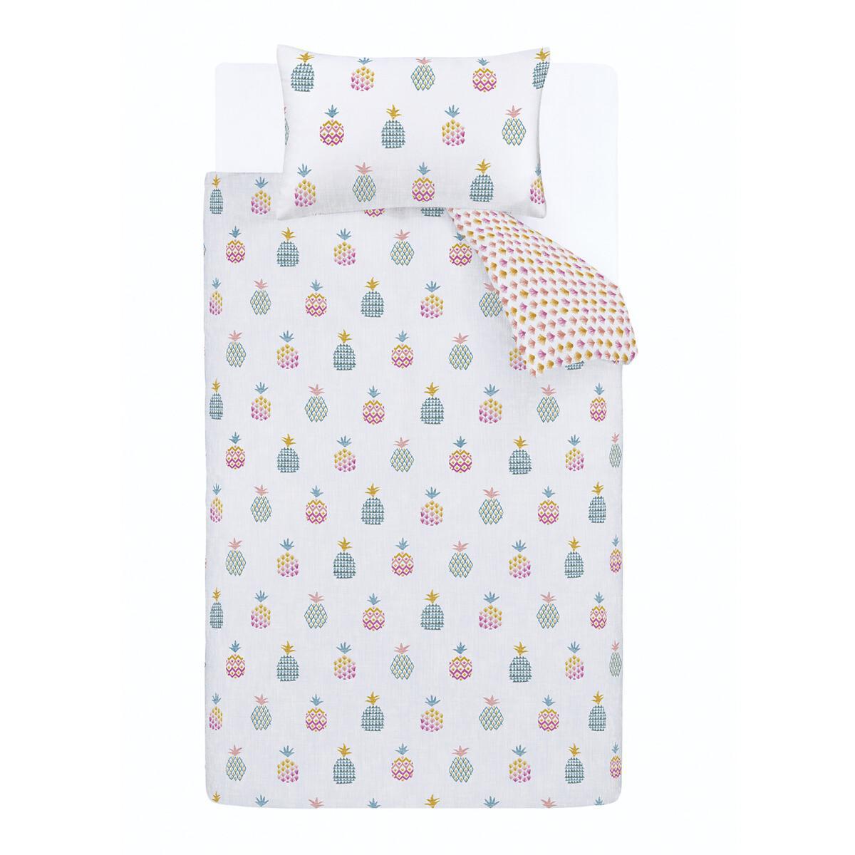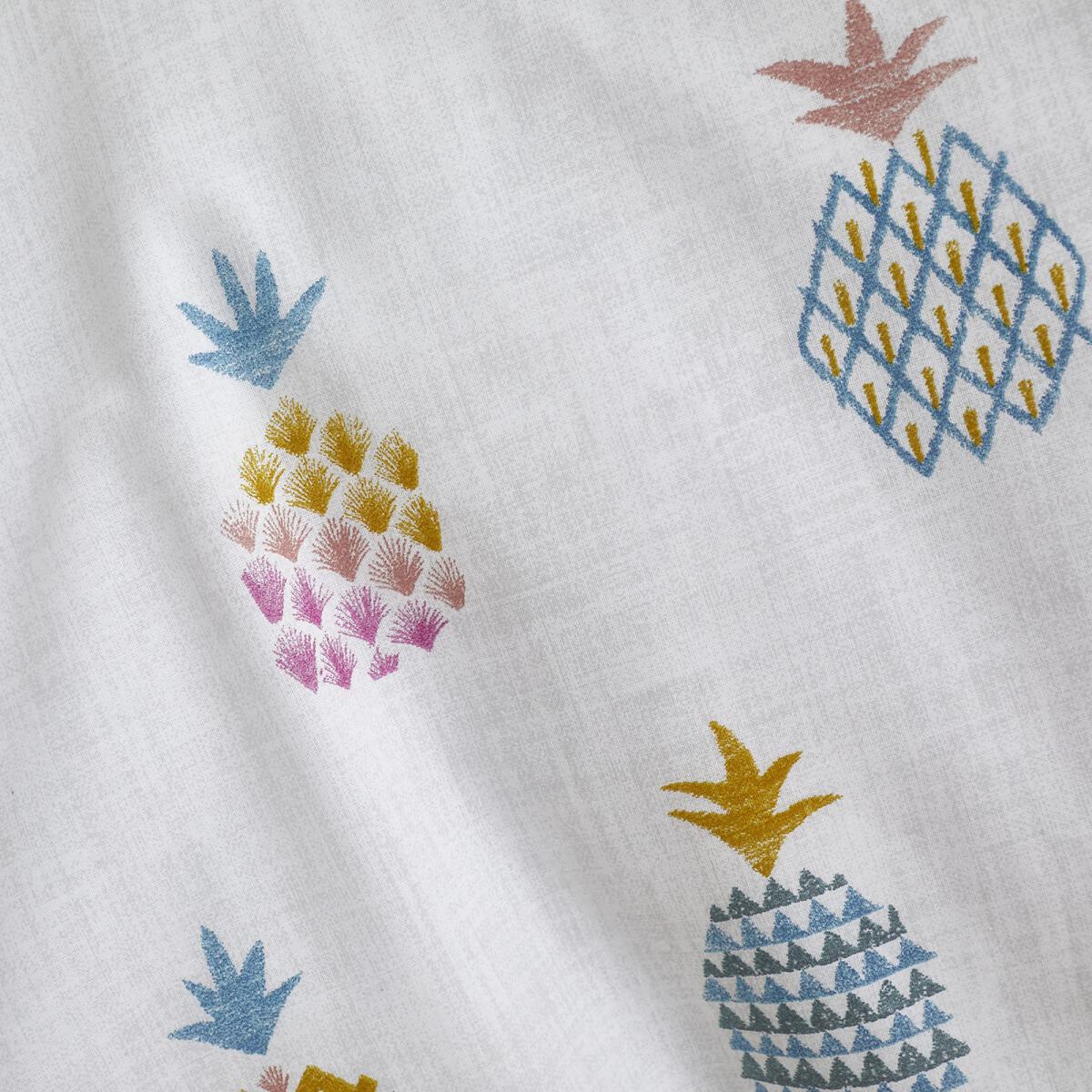 This inspired collection of eclectic designs is a fusion of influences from across the world with a modern interpretation of artisan motifs and timeless textures. Step into a tropical world and surround yourself with fresh pineapples. This stamp effect design watches colourful fruit shimmy across soft-to-touch, pure cotton bed linen. With a vibrant palm fan reverse you’re able to keep it playful no matter which side you choose. Beautifully finished with branded side labels and button fastenings. Crafted from 100% Cotton. Machine Wash at 40 Degrees. Available in the following sizes: Single Duvet Set- 135x200cm + 1 50x75cm Pillowcase. Double Duvet Set- 200x200cm + 2 50x75cm Pillowcases. King Duvet Set- 220x230cm + 2 50x75cm Pillowcases. Super King Duvet Set- 220x260cm + 2 x 50x75cm Pillowcases. This product will be dispatched by one of our trusted suppliers. You’ll be contacted by their selected courier about your delivery.