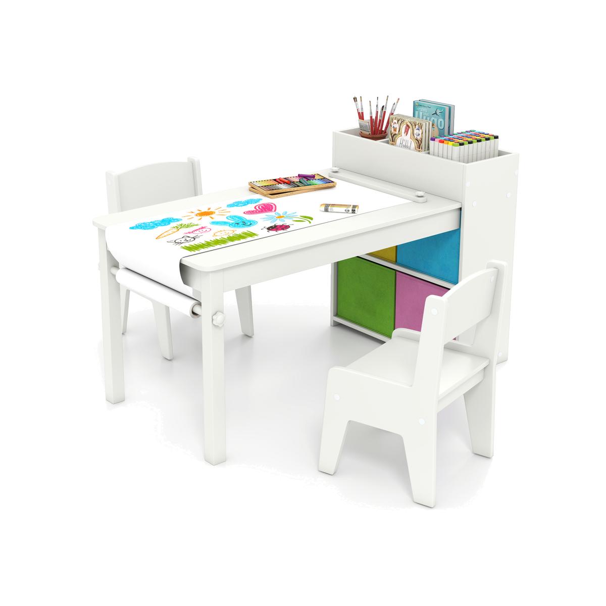Kids Art Table Chairs Set with Paper Roll - White