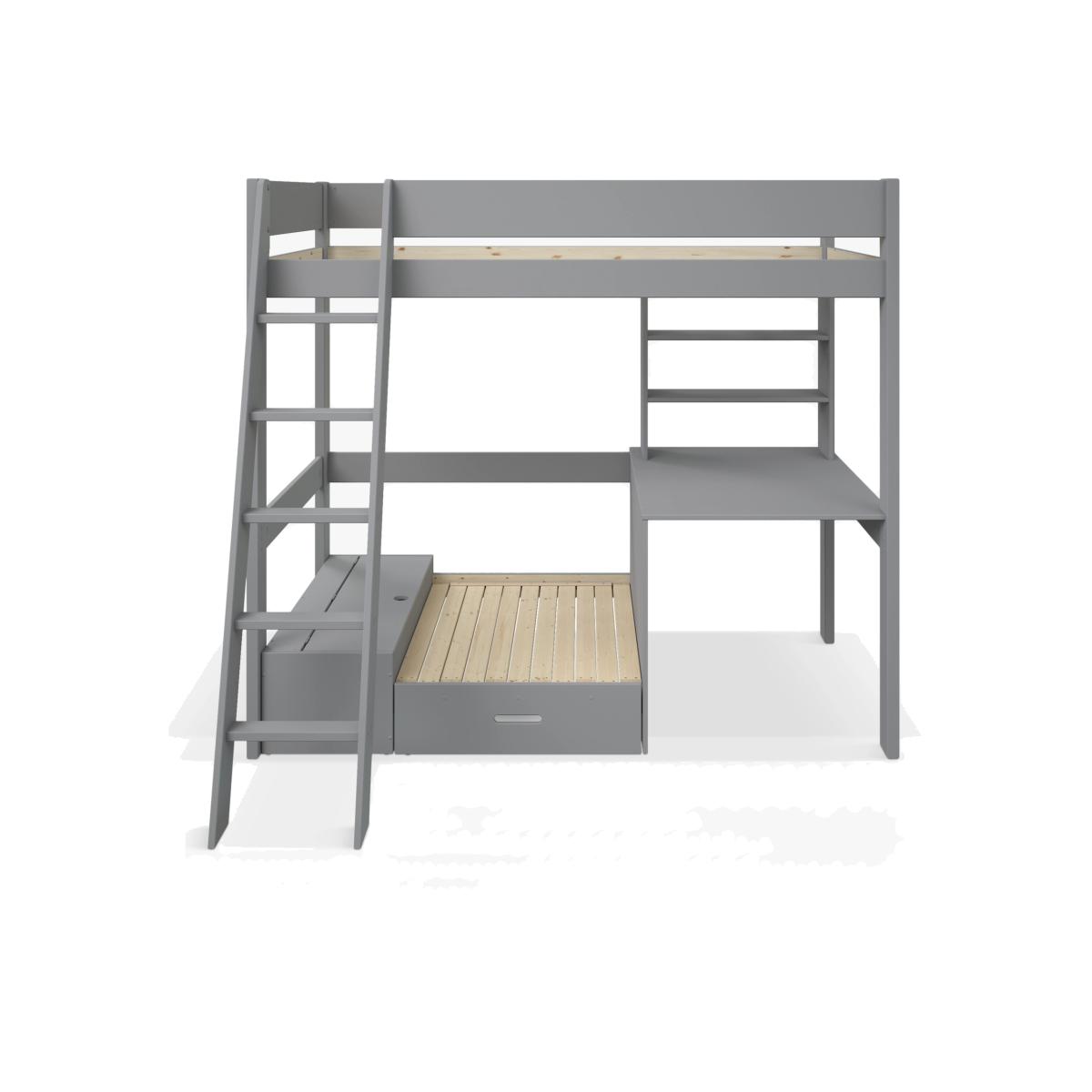 The Kids Avenue Estella 4 High Sleeper Bed is a fantastic new addition to the Estella range and is made from pinewood. The design features a ladder that can be fitted either to the left or right, depending on the layout of your bedroom and takes a standard UK-sized single mattress. The Estella 4 High Sleeper comes with a built-in desk and shelving unit as well as a pull-out bed, storage box and futon. This bed also features a hidden storage box which is located underneath the corner sofa, which is great for storing away books or additional bedding.