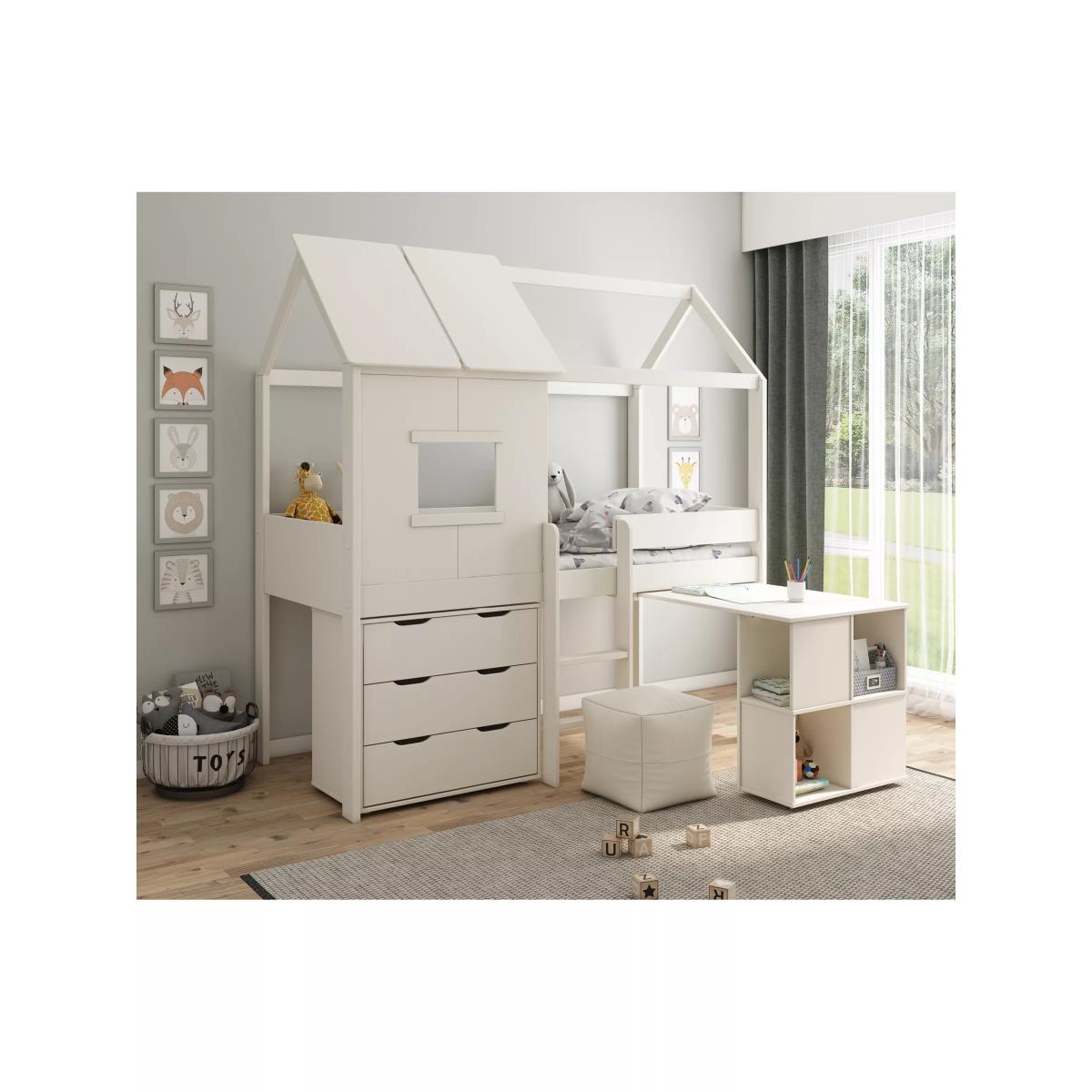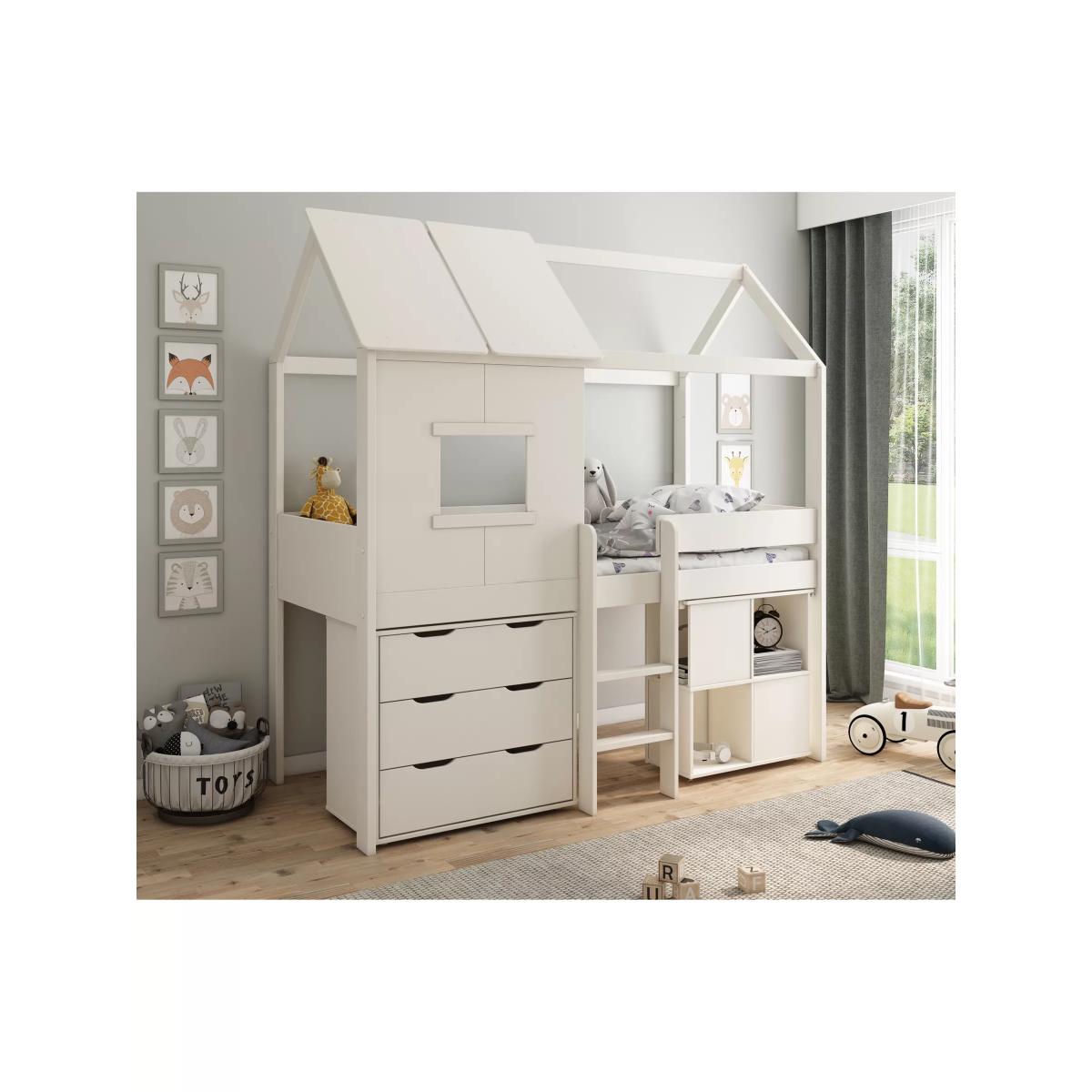 Kids Avenue Ordi Midi Playhouse Mid-Sleeper Bed with Desk and Chest of Drawers, European Single