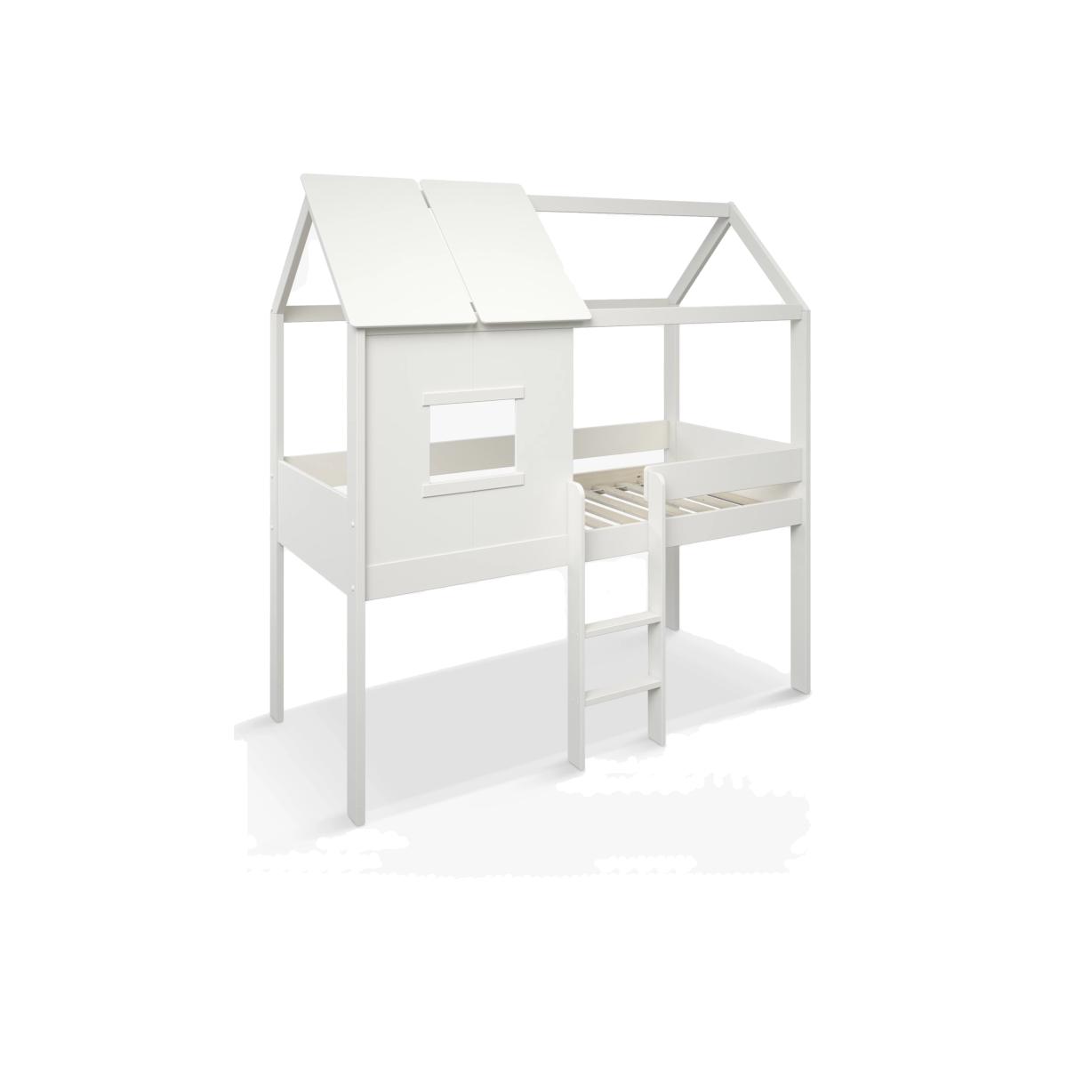 This mid-sleeper solid wooden frame has been designed to be the perfect eye-catching novelty bed, taking up a playhouse theme style. This magical statement piece would fit any child's bedroom, and having their own treehouse is sure to make their dreams come true. This model includes a pull-out desk with a chest of drawers, which can be used to store toys, clothes or other items. Made from good quality pine and MDF.
