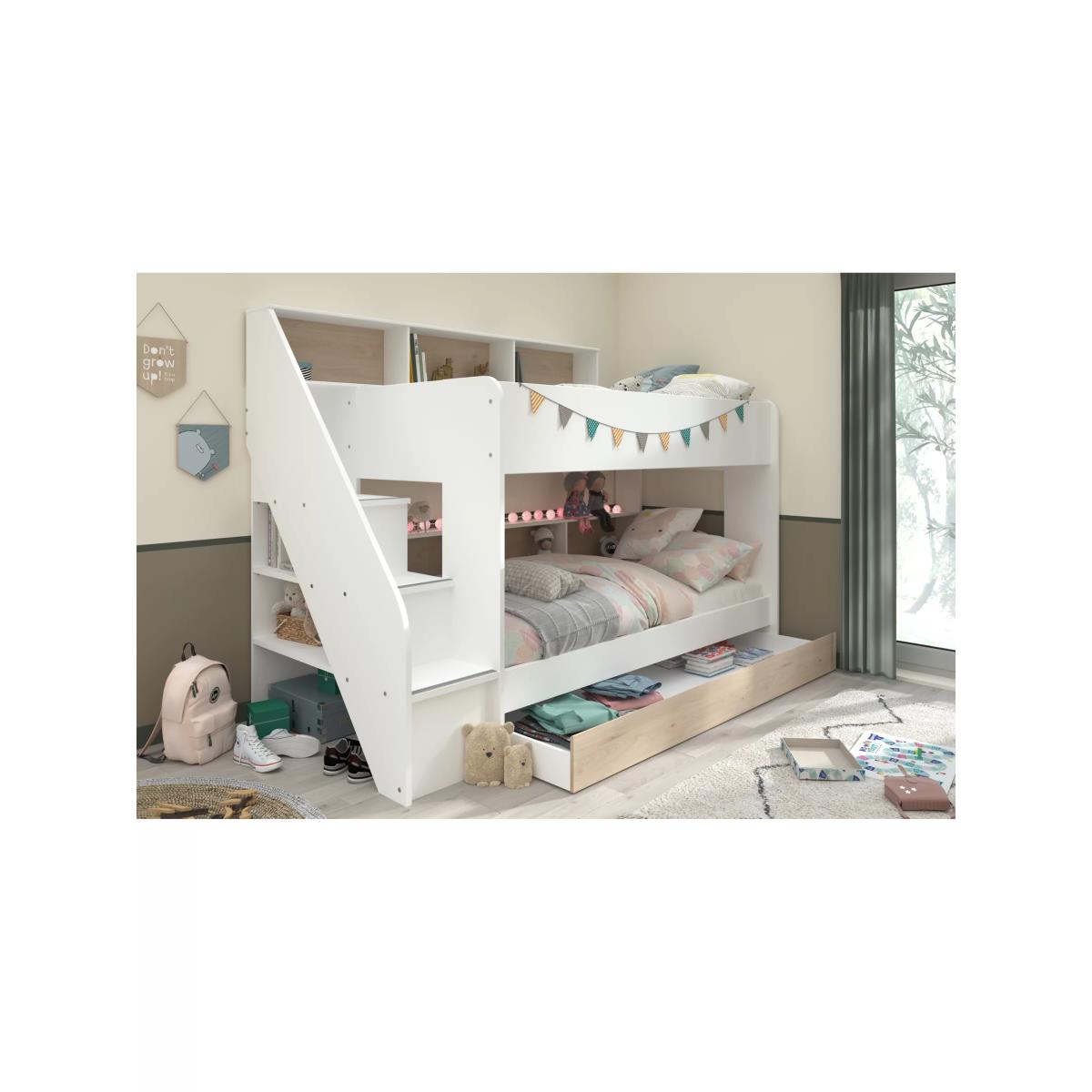 The Parisot Biblio bunk bed is ideal for those looking to bring a little more subtlety and elegance from their bed. Beware of high street imitations - these are the original big bunks with storage, from Europe's highly respected Parisot factory, often copied but not bettered. Parisot just can't help bringing something unique to their children's furniture, and in the case of their Biblio bunk bed, it's the innovative steps rather than a traditional ladder. These steps also function as storage shelving units - the sort of practical and elegant thinking that Parisot has a reputation for. (NB: The steps fit on the left side, as picture). There are additional shelves at the back of each sturdy, full-sized bunk - ideal for keeping books or midnight snacks on. The back panels of these shelves are finished in an elegant oak look. There's an option to put a handy trundle drawer (sold separately) beneath the bottom bunk - great for storage. It rolls out on castors and can also be used as another bed.