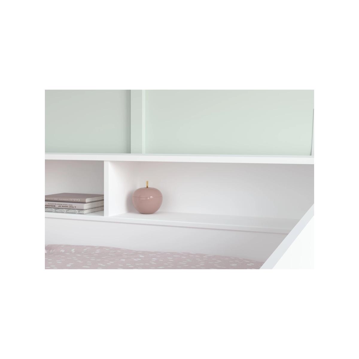 This sleep storage bed is robust and chunky and finished in a clean white although the backboards for the shelving are reversible and you have an option of which colour you want to show, pink, cappuccino, white or black, all colours come with the package so you don’t have to pre-select. The 2 deep drawers are great for storage and the inbuilt back shelving allows your child to display their treasures and keep them close at hand. Made from heat-treated particle board which is foil-wrapped for a very heavy, durable and wipeable surface.