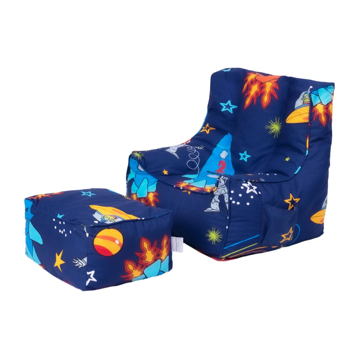 Our poufs are made from a polycotton fabric, typically used for comfortable seating. The side pockets on the bean bag are convenient little spaces where you can put things like remote controls, snacks, or small items you want to keep close while you're sitting and relaxing. They're like handy storage spots right on the bean bag. The approximate measurements are: 54 cm (height) x 45 cm (length) x 50 cm (width). Footrest: 20 cm (height) x 38 cm (length) x 28 cm (width).A Circular Beanbag Designed with a Built-in Carry Handle for Convenient Portability.