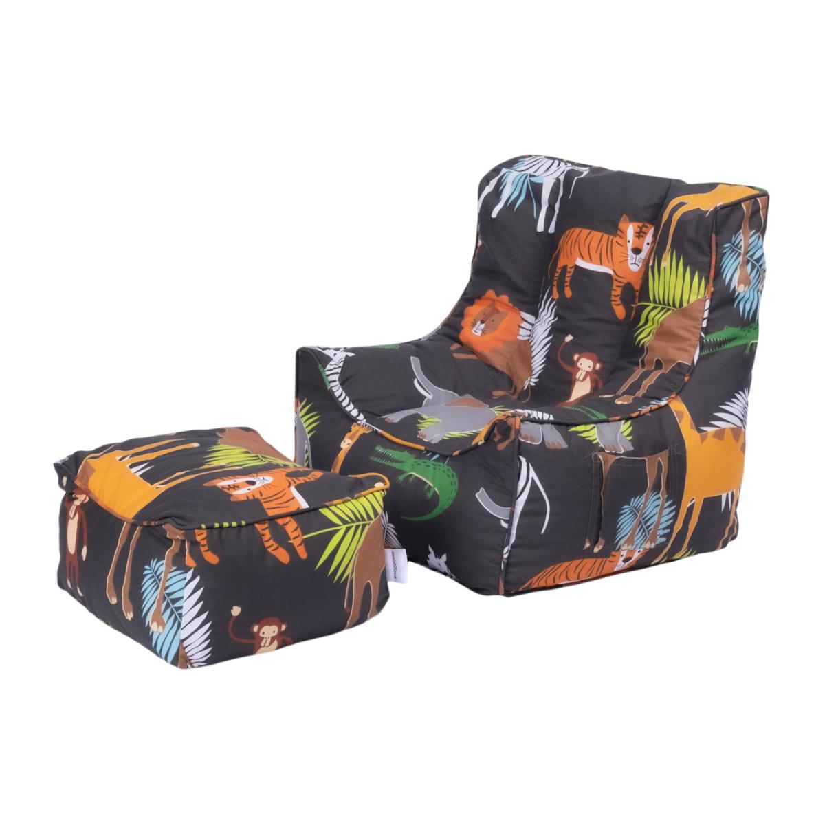 Our poufs are made from a polycotton fabric, typically used for comfortable seating. The side pockets on the bean bag are convenient little spaces where you can put things like remote controls, snacks, or small items you want to keep close while you're sitting and relaxing. They're like handy storage spots right on the bean bag. The approximate measurements are: 54 cm (height) x 45 cm (length) x 50 cm (width). Footrest: 20 cm (height) x 38 cm (length) x 28 cm (width).A Circular Beanbag Designed with a Built-in Carry Handle for Convenient Portability.