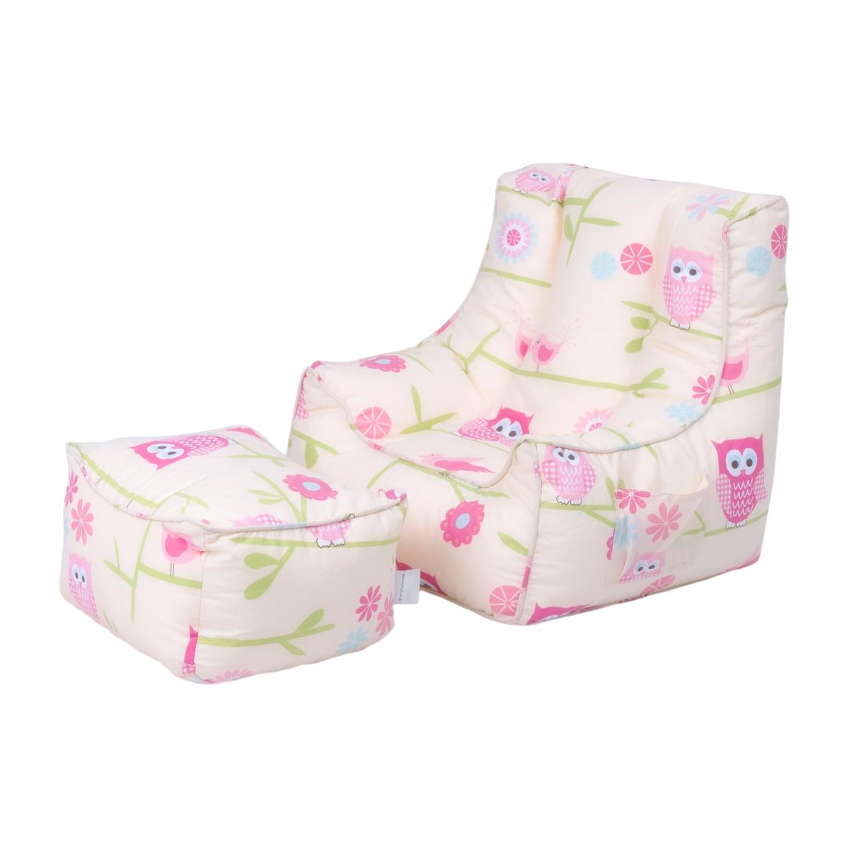 Kids Bean Bag Chair with Footstool Comfy Beanbag - owl