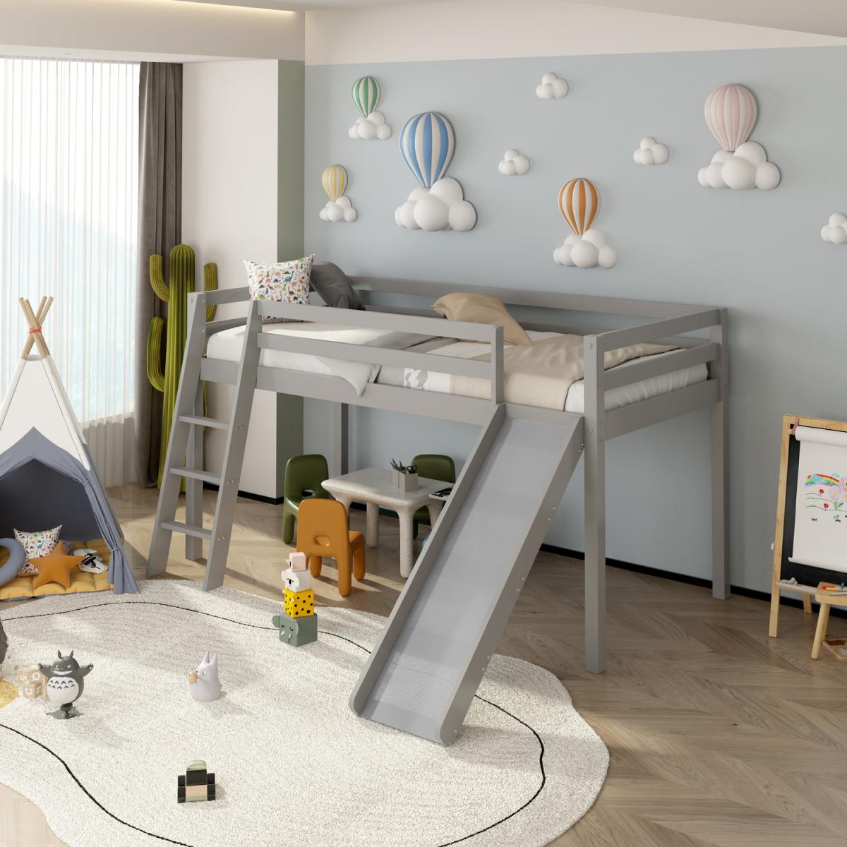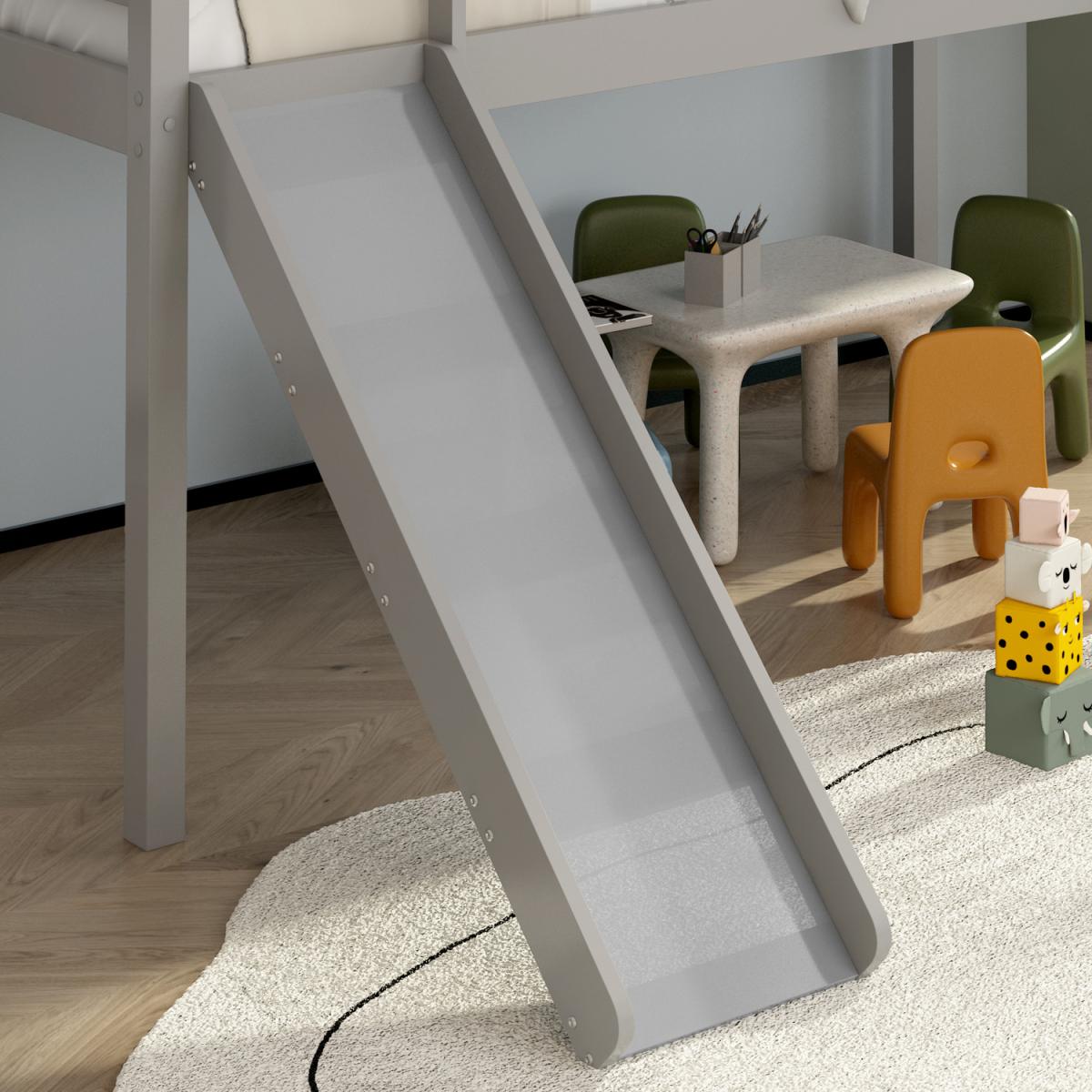 Introducing the versatile and exciting Mid Sleeper Bunk Bed with Slide and Ladder - the perfect blend of functionality and fun for your child's bedroom! Crafted with precision from sturdy solid pine wood, this bunk bed ensures durability and a safe sleeping space for your little one. With dimensions of 198cm in length, 96cm in width, and 110cm in height, this mid sleeper bunk bed optimizes space in smaller rooms, making it an excellent choice for those seeking a space-saving solution. The elevated mid sleeper design creates valuable space underneath, providing room for play, storage, or study, making it a practical and efficient addition to any bedroom. The highlight of this bunk bed is the exciting slide, which adds an element of adventure and joy to your child's everyday routine. Measuring 198cm in length, 201cm in width, and 110cm in height, the bed with slide ensures that your child can slide out of bed with excitement each morning, starting the day off on a high note. In addition to the slide, this bunk bed features a ladder for easy and secure access to the upper bed. The ladder and slide can be conveniently removed, offering flexibility and adaptability to suit your child's preferences and needs as they grow. Safety is of utmost importance, and this bunk bed is carefully constructed with sturdy guardrails surrounding the upper bed to prevent accidental falls. The slide and ladder are also designed with safety in mind, ensuring a secure and smooth sliding and climbing experience. Dimension: bed size: 198cm x 96cm x 110 cm (LxWx. H), Bed with Slide Size: 198cm x 201cm x 110cm (LxWx. H).