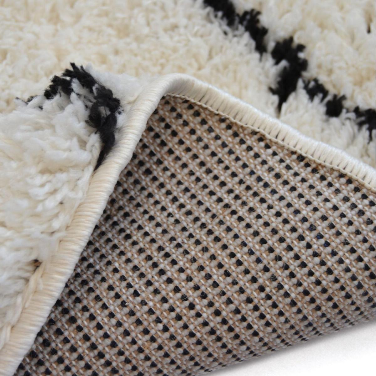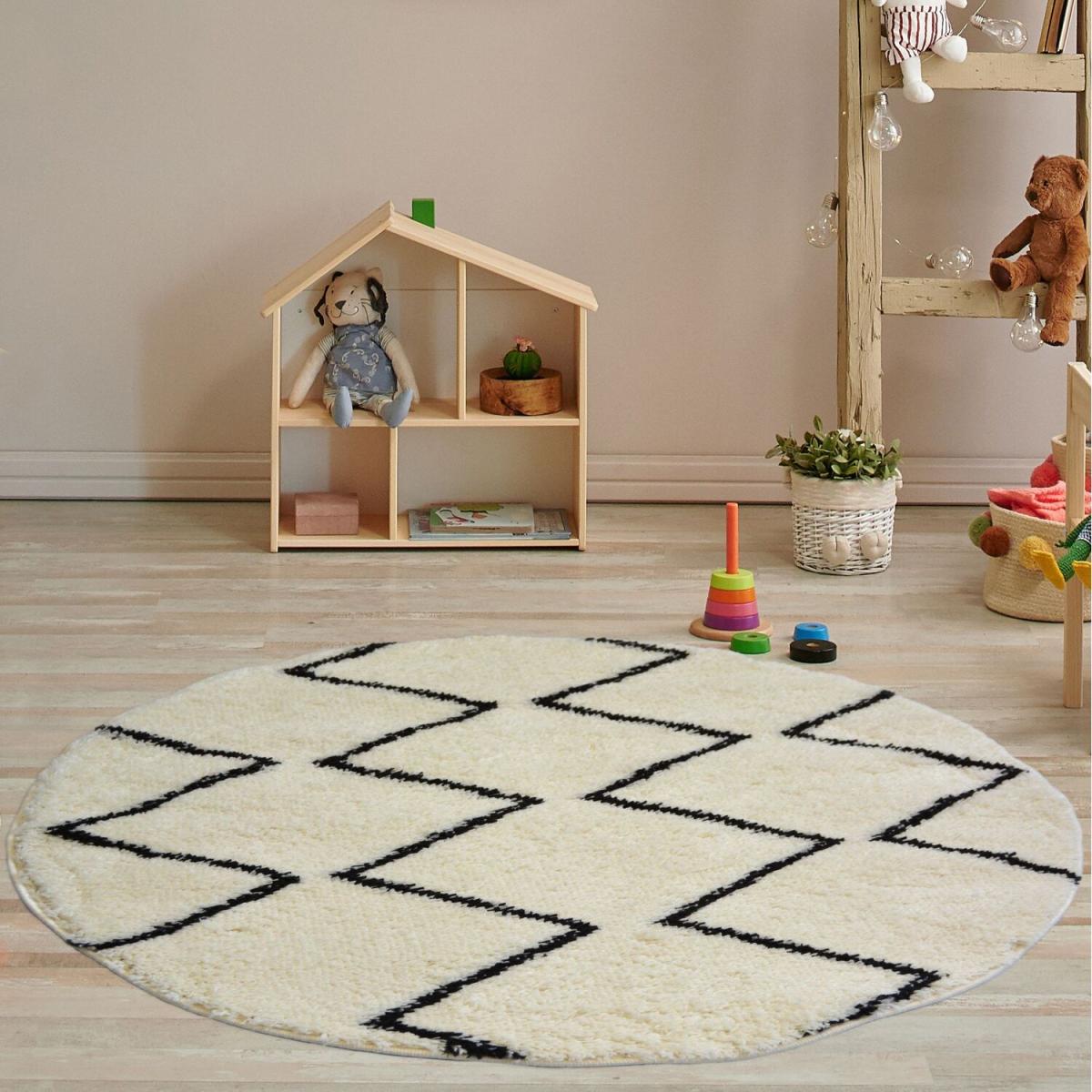 Kids Black and White ZigZag Circle Shaggy Bedroom Rug - Brae - Black