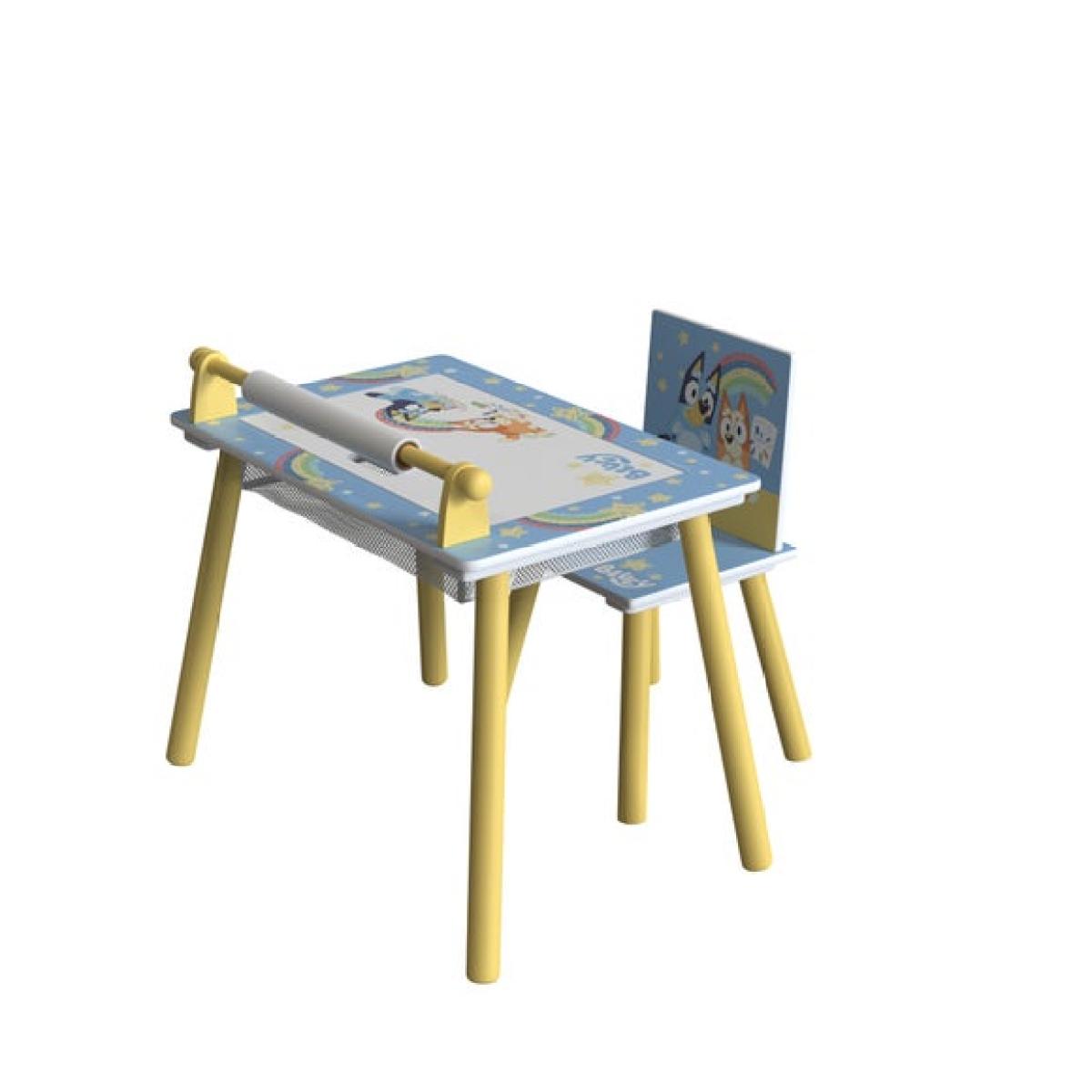 * Matching table and chair set * Fun character design * Built in storage Let the creativity flow with the Bluey activity table and chair set, the perfect spot for little imaginations to run wild! Whether it’s doodling masterpieces, crafting colourful creations, or diving into storytime, this cheerful set brings Bluey and Bingo right into your child’s play space. With a built-in chalkboard and paper roll holder (just add your own supplies), plus handy storage for all their bits and bobs, it’s as practical as it is playful. Lightweight, easy to clean, and just the right size for little ones aged 3+, it’s a fab addition to any bedroom or playroom. Please Note: In accordance to The Offensive Weapons Act 2019, this product is now click and collect only. You may be asked to show ID upon collection.