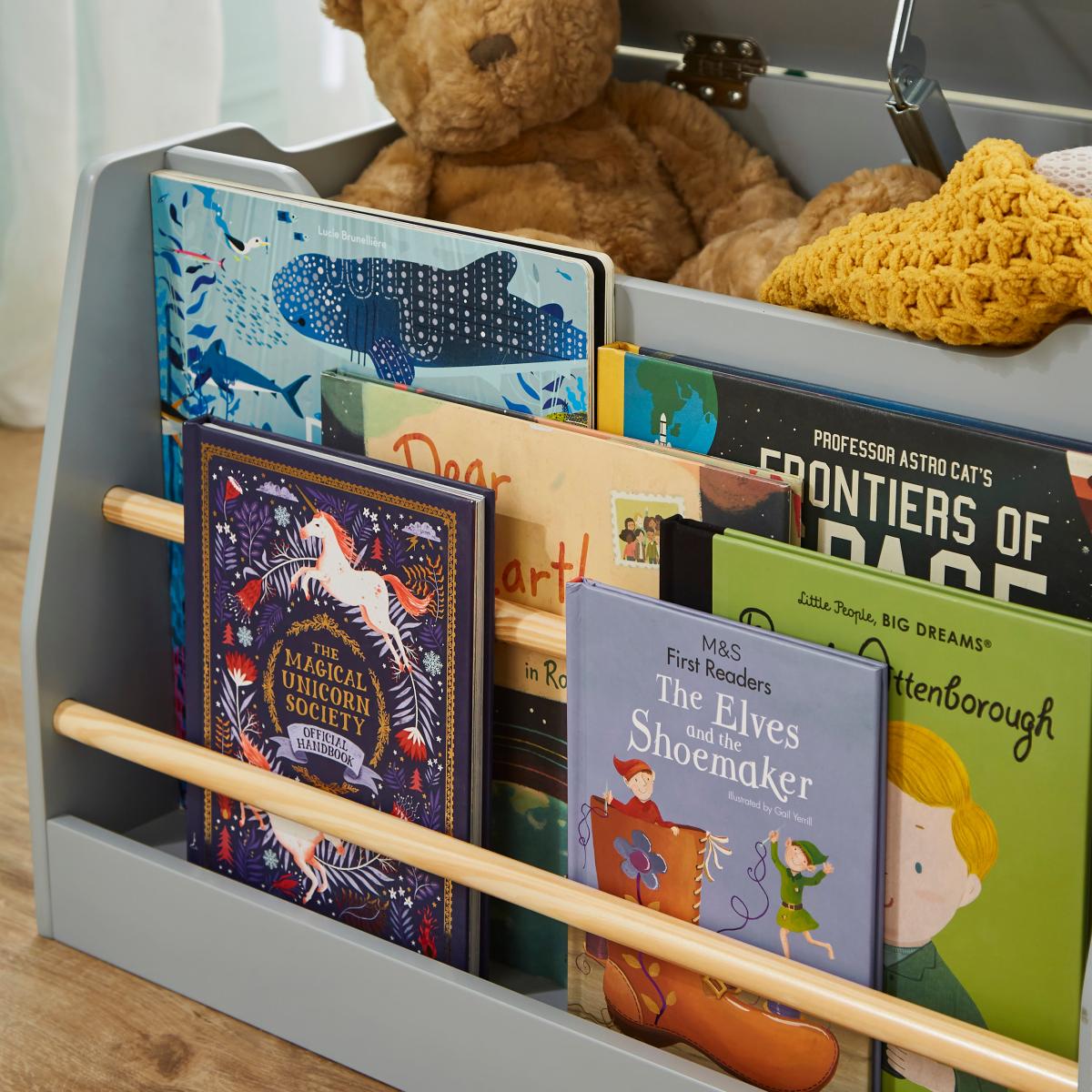 I love this kid’s bookcase toy box in grey for its versatility and practicality. It works really well in contemporary, Scandi-inspired interiors thanks to its neutral hue, but it can also coordinate effortlessly with more playful or colourful nurseries and children’s rooms. It's ideal for creating organised, clutter-free spaces while adding a functional design element. Styling tips include pairing it with soft, textured rugs or colourful cushions to make the space inviting, or placing it in a corner with some decorative storage boxes on top for easy access to books and toys. Its compact size also makes it suitable for smaller rooms, making it a smart choice for maximising storage without sacrificing style.