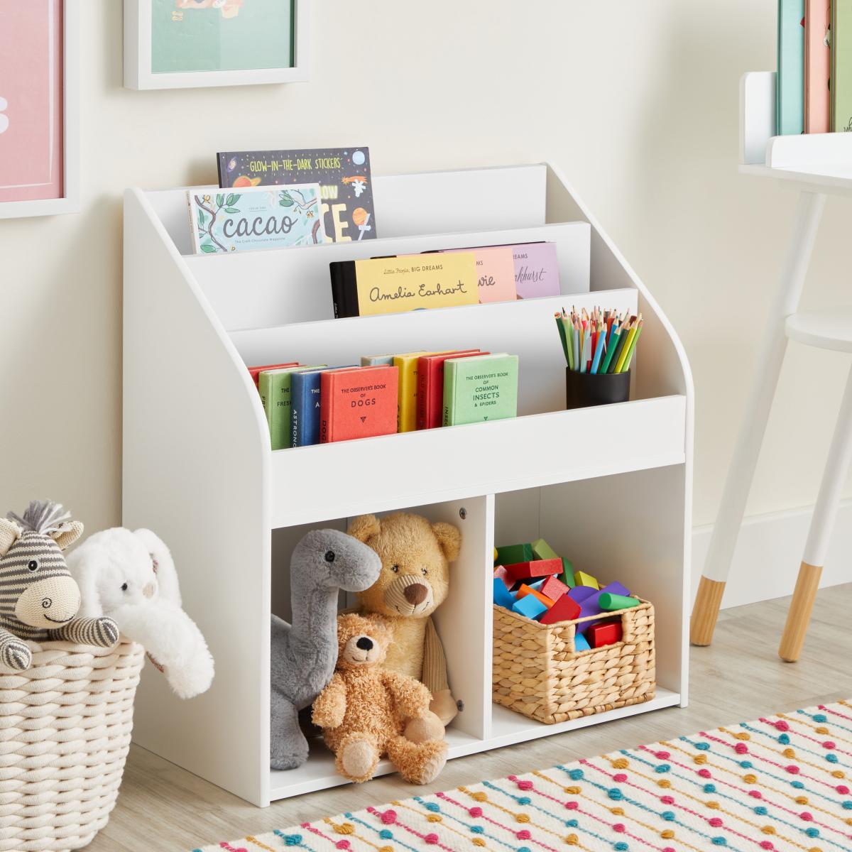 This childrens bookcase with storage makes it much easier for your little ones to keep track of their belongings. This bookcase lets your child take out their books and toys by themselves and put them away easily afterwards, thanks to the open design. With a classic finish, this bookcase easily combines with your existing decor.