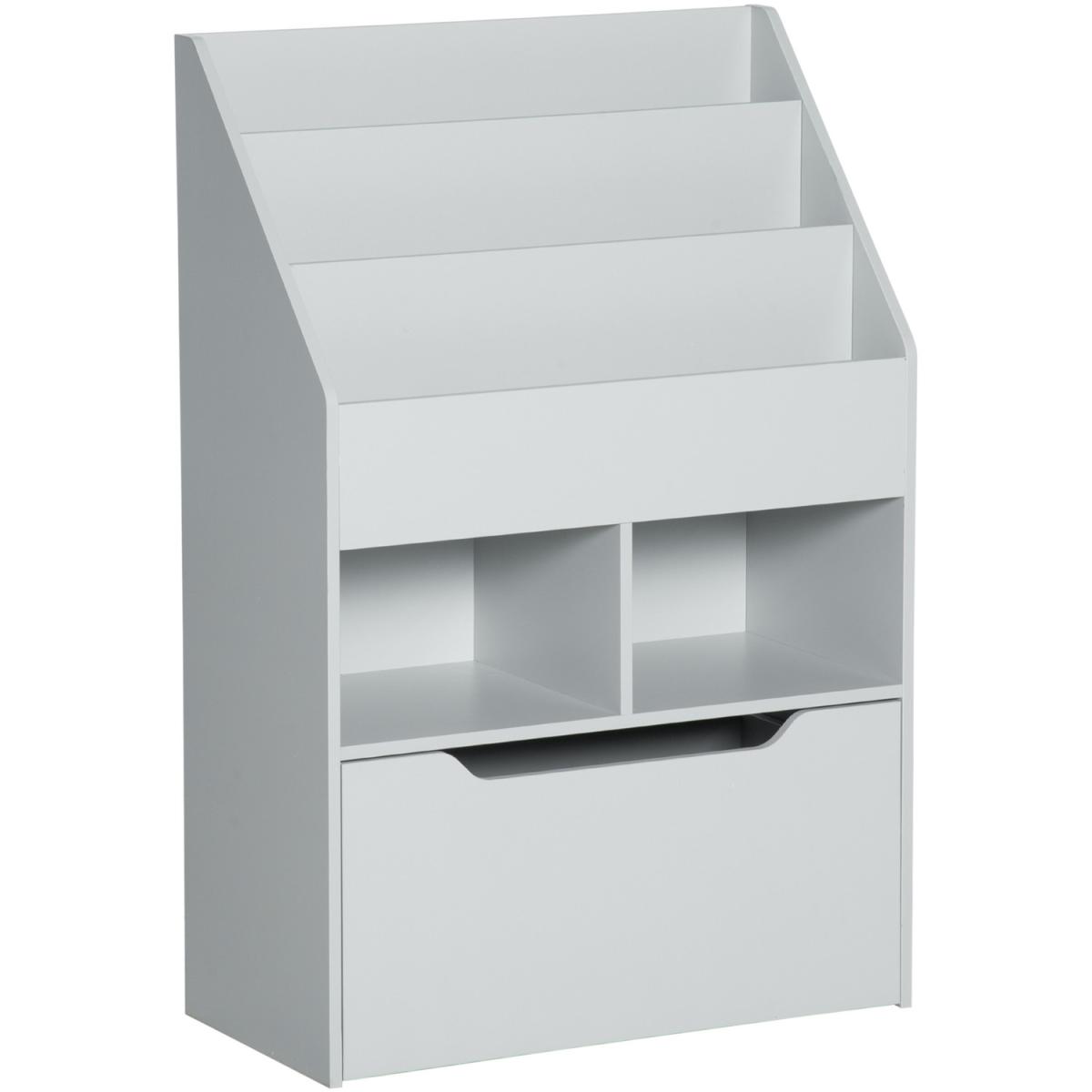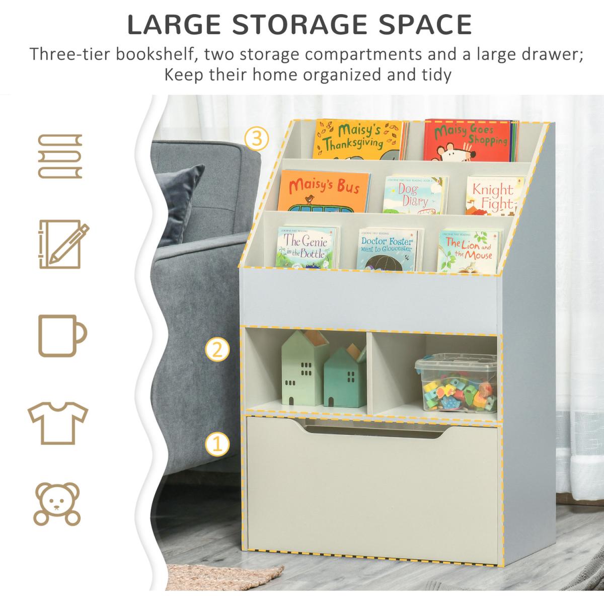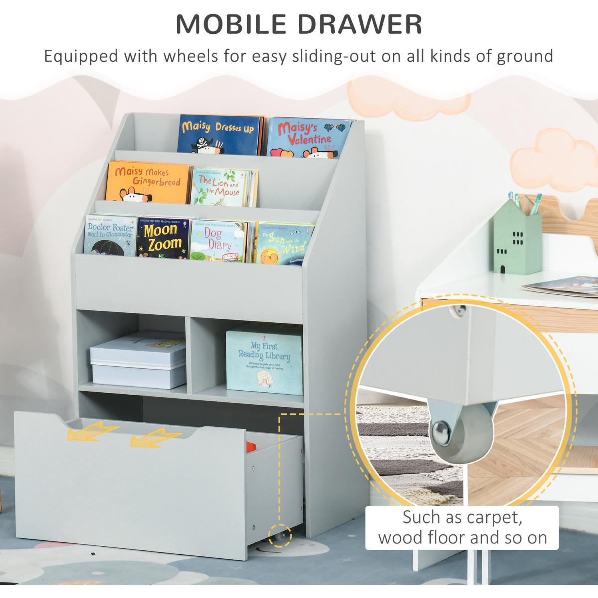 Kids Bookshelf with Storage Drawer, Bookcase with Wheels - Grey