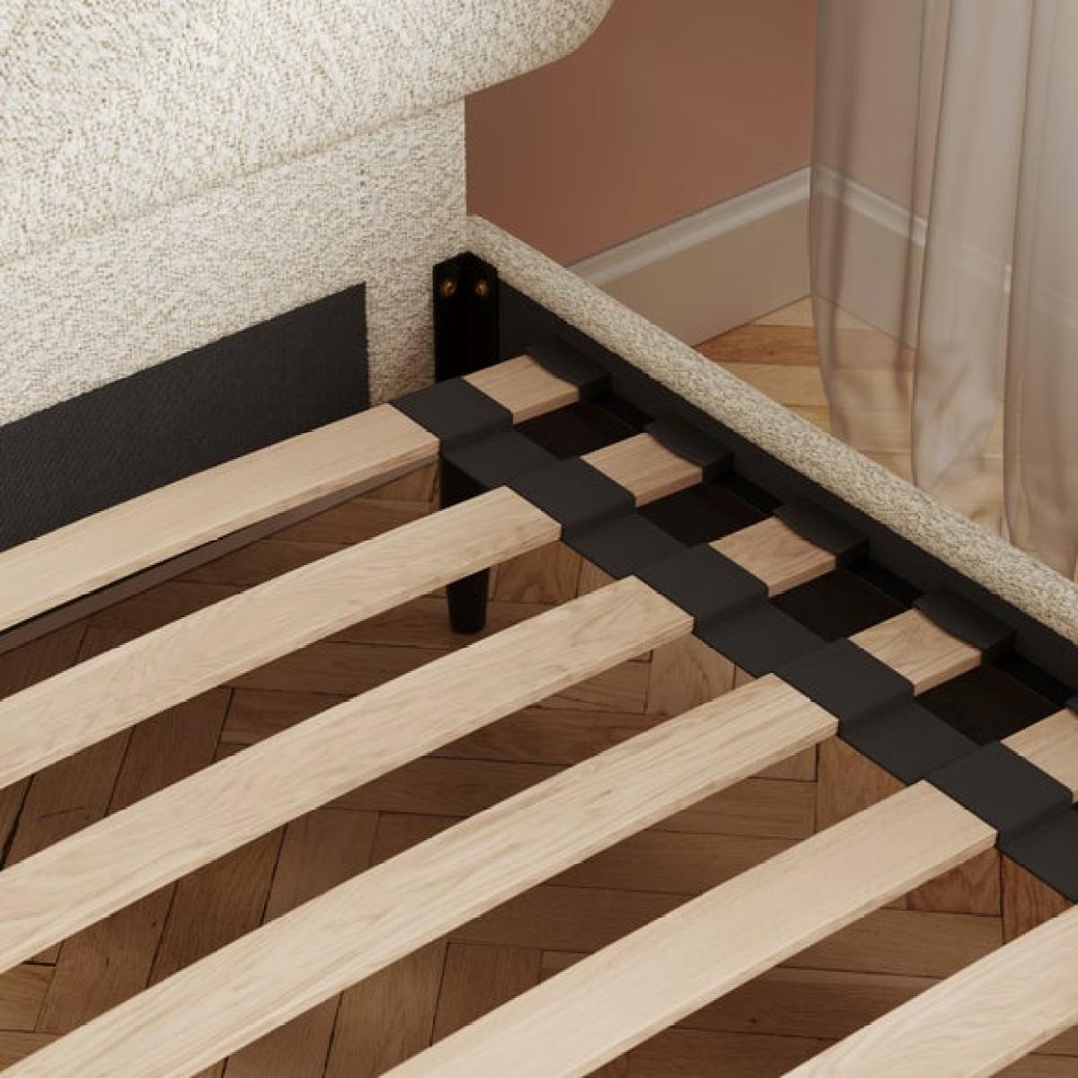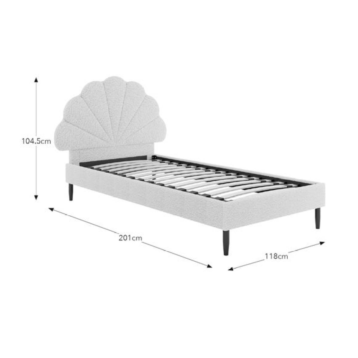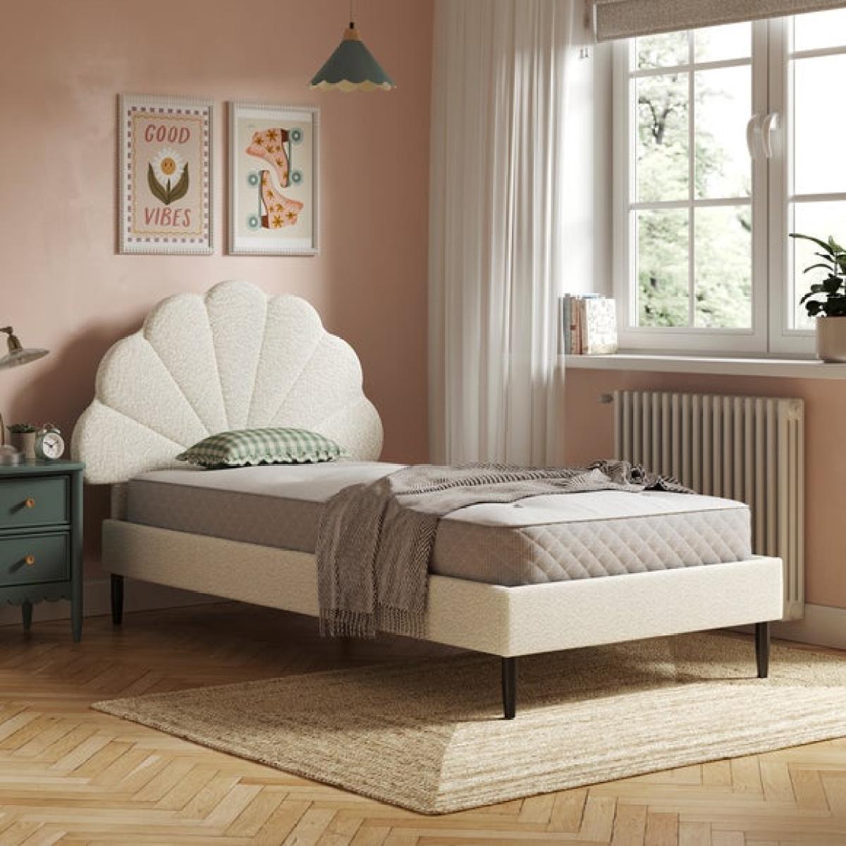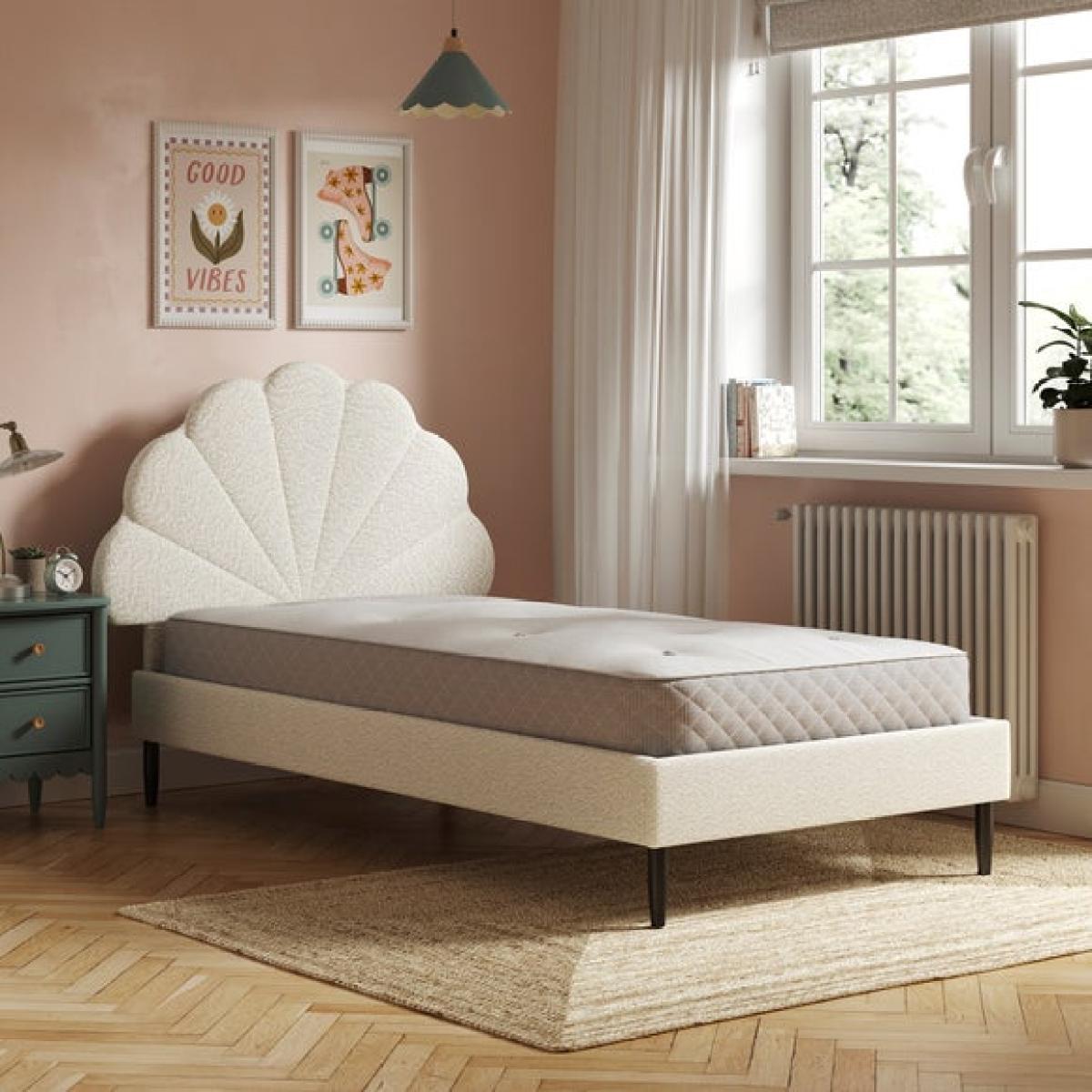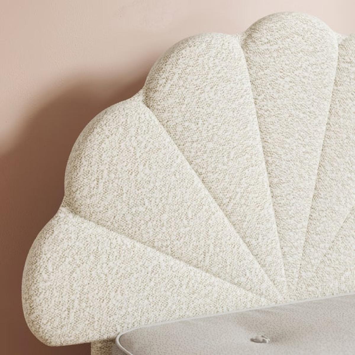 * Upholstered children's bed * Soft boucle fabric * Petal detailing Soft, stylish, and oh-so-snuggly, this bed is a dream come true for little sleepyheads. Wrapped in a beautifully textured bouclé, it brings a cosy, calming vibe to any bedroom. The plush upholstery feels as good as it looks, while the modern design adds a grown-up touch your child will love. Built with a sturdy frame and a sprung slatted base to keep things fresh and comfy, it’s made for sweet dreams and lazy lie-ins. And with easy peasy assembly, you’ll have it set up faster than you can say “bedtime story.”