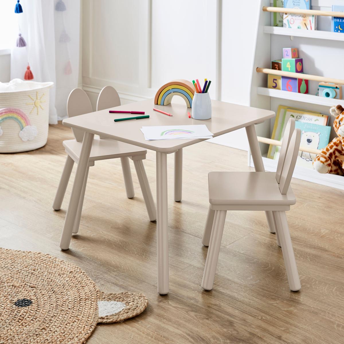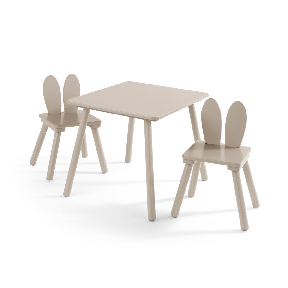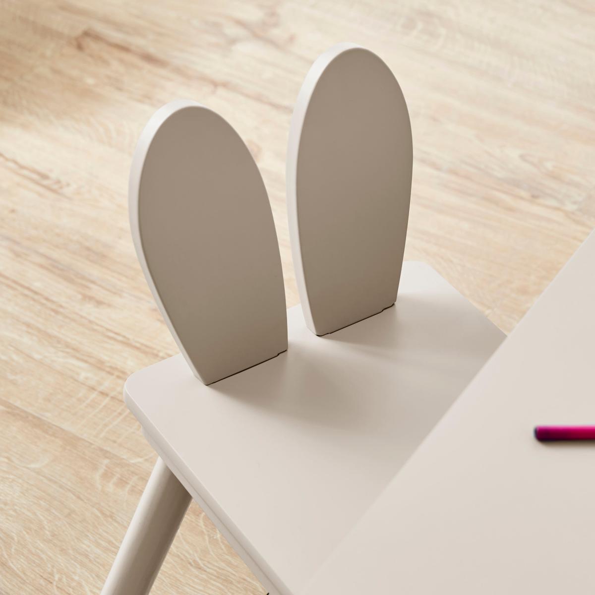 * 1 x Table and 2 x Chairs * Painted finish Hop into playtime with this play table and chair set. With adorable bunny-ear backrests and a sturdy table just right for arts, crafts, and tea parties, this charming set is perfect for little imaginations.