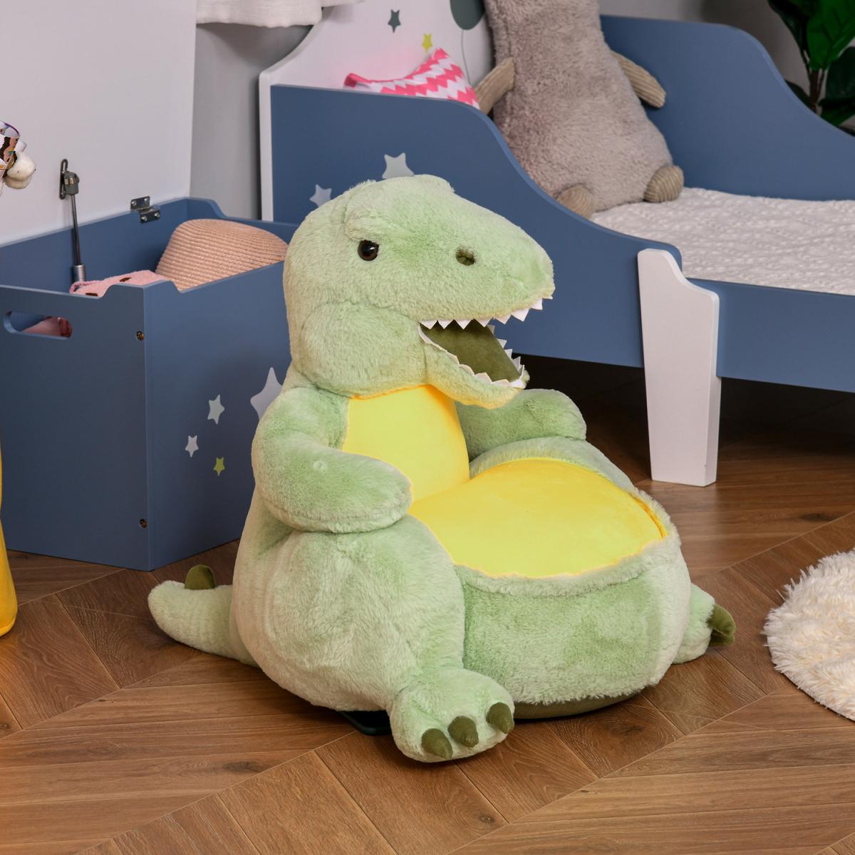 This is comfort and cuteness in one - give your little one this giant dinosaur armchair for a unique piece in the bedroom or playroom. The large padded seat with flannel upholstery is incredibly soft and comfortable, with the arms acting as rests to hold them in place. As it's lightweight and portable, it's easy to move around to new locations.