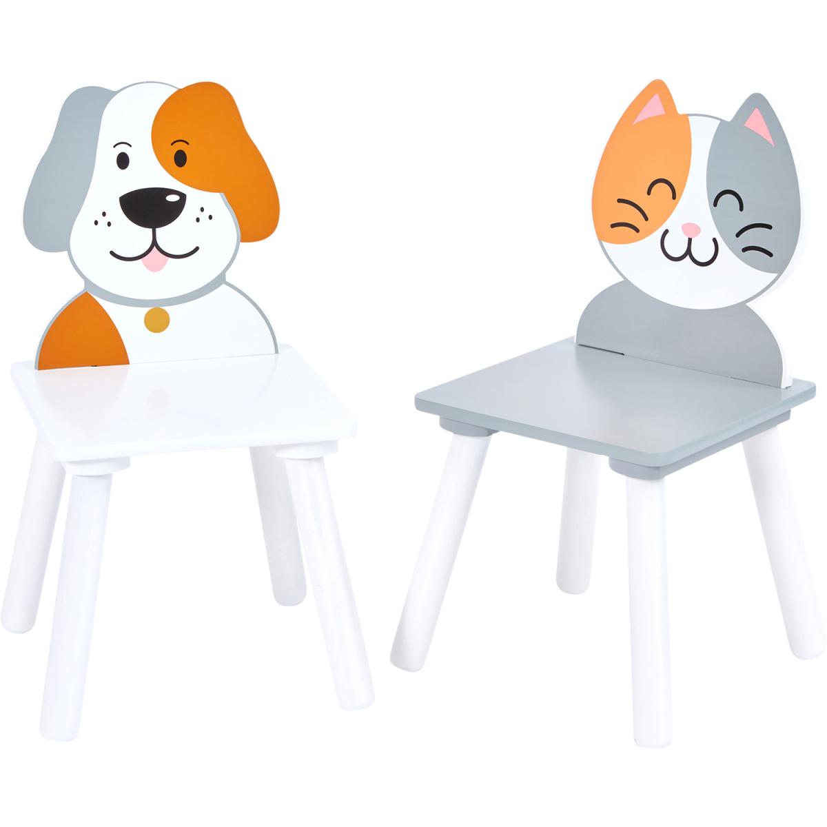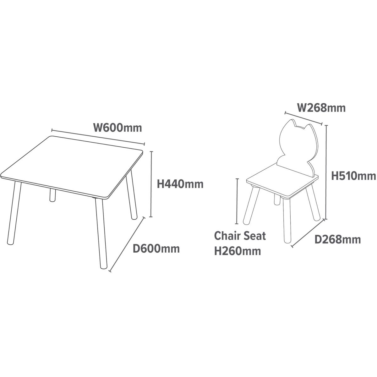 A family's best friends could be a dog or a cat, so why not both? Our stylish wooden table and chair set is a functional addition to your child's bedroom or playroom. The chairs have a unique cut out design in subtle colours so that our table and chairs set can fit into any decor. This set is the ideal size for your child to learn to sit at a table properly. Let your child's imagination run free with our cat and dog table and chairs set.