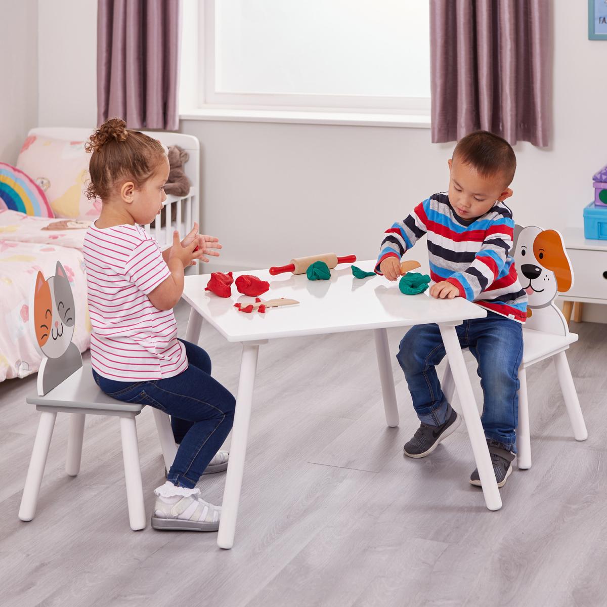 Kids Cat and Dog Themed Table and Chairs - Grey and White