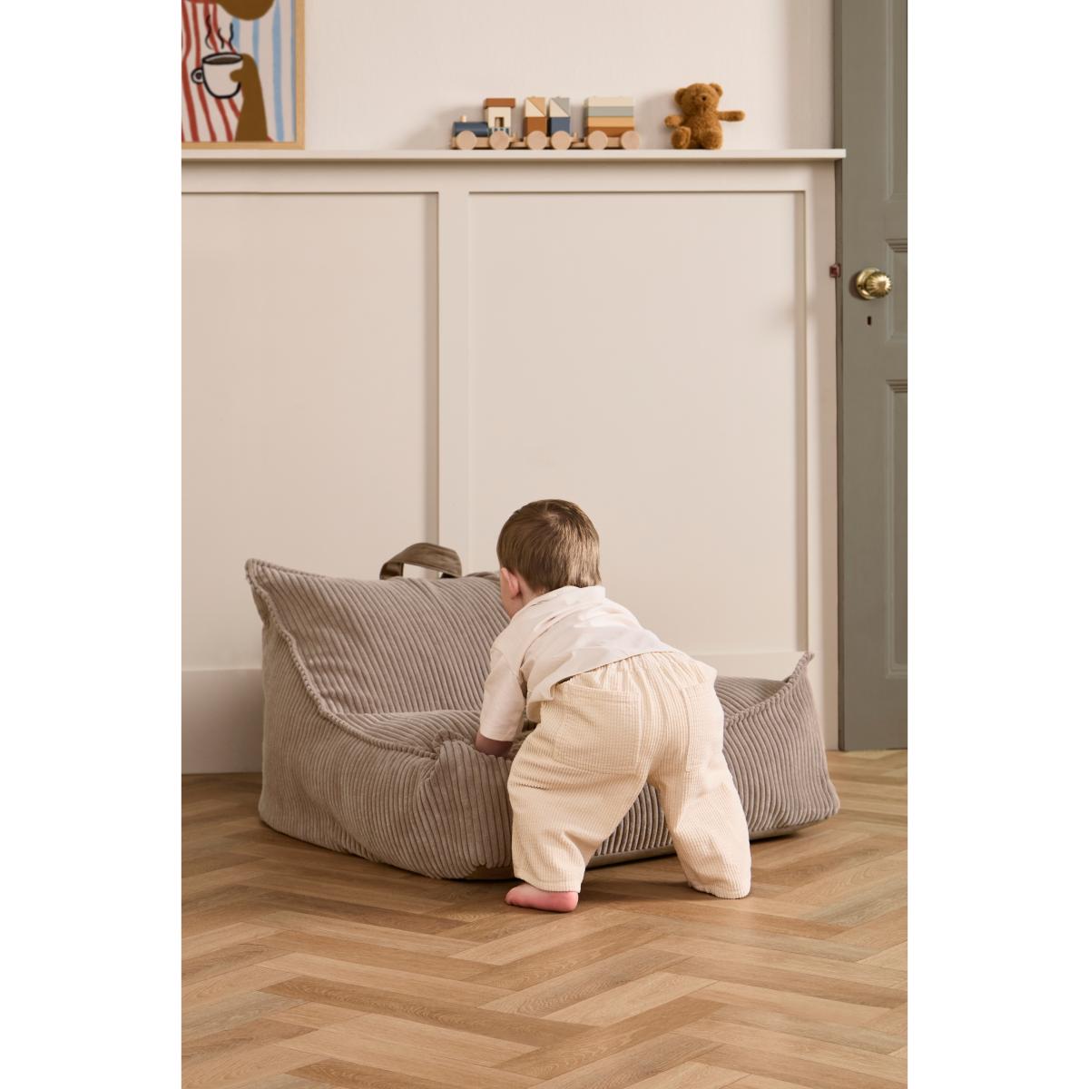 Kid’s Base bean bag from Kid’s Concept is a soft corduroy bean bag that molds to the body for maximum comfort. The bean bag has a handle on the back for easy moving and a removable, machine-washable cover that makes it easy to keep fresh. Perfect as a reading nook or resting spot in the nursery — a comfortable and flexible seat that quickly becomes the children’s favorite.